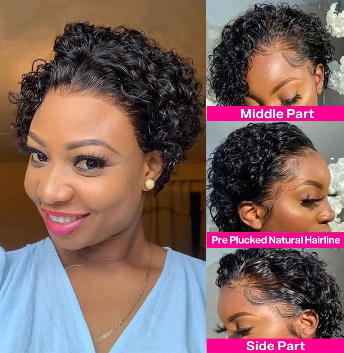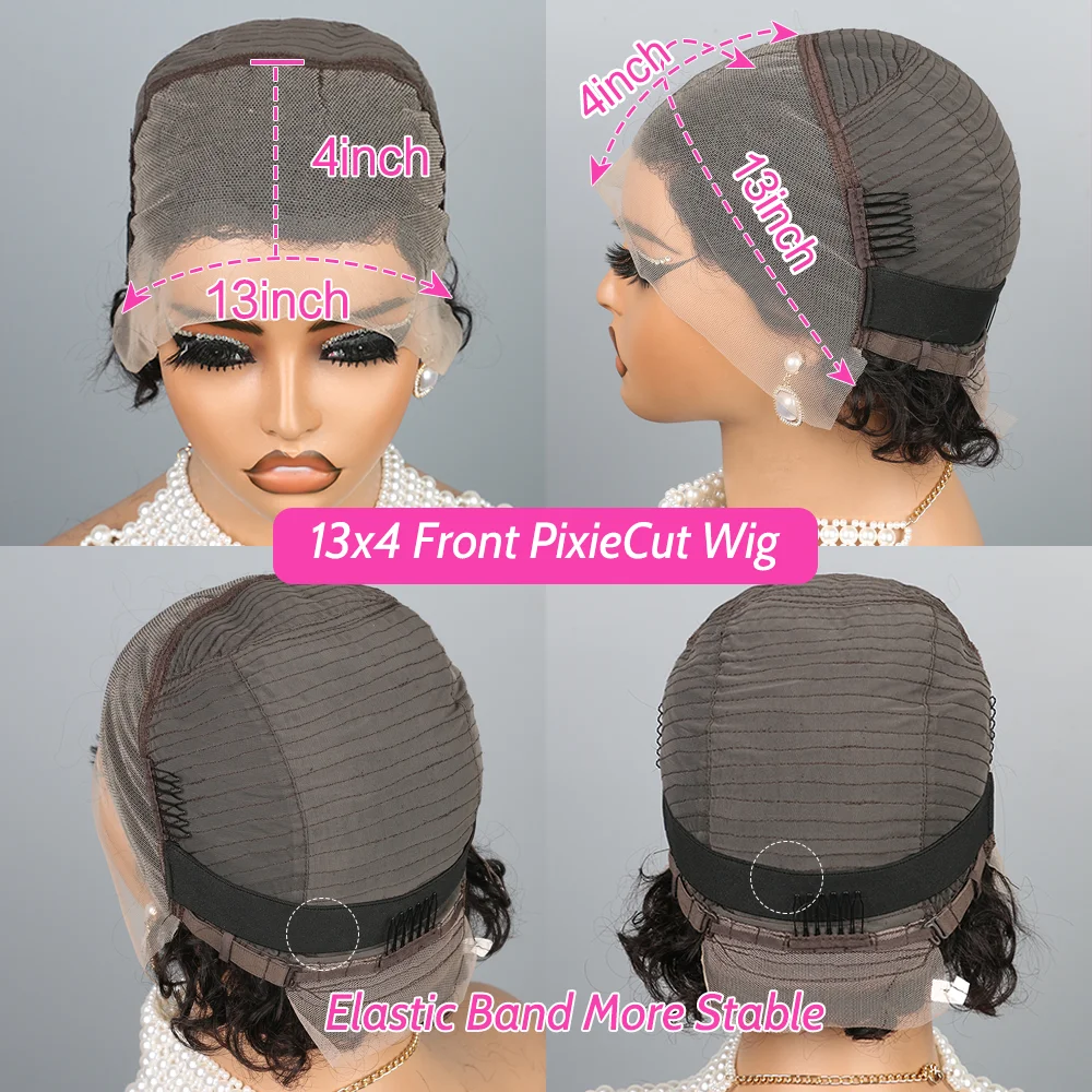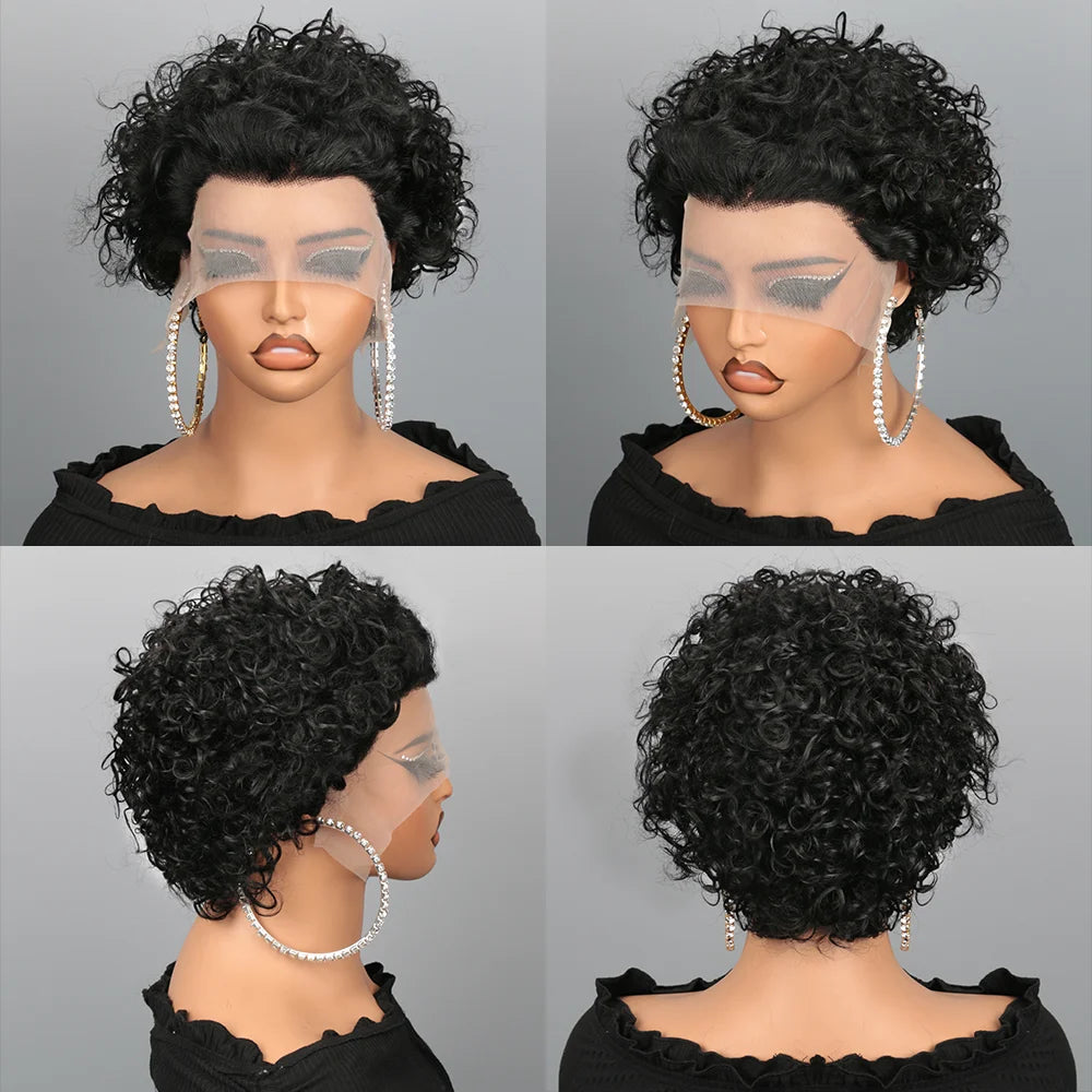 13X4 Short Curly Pixie Cut Wigs Human Hair Transparent Rose Curly Lace Frontal Wigs Human Hair For Black Women