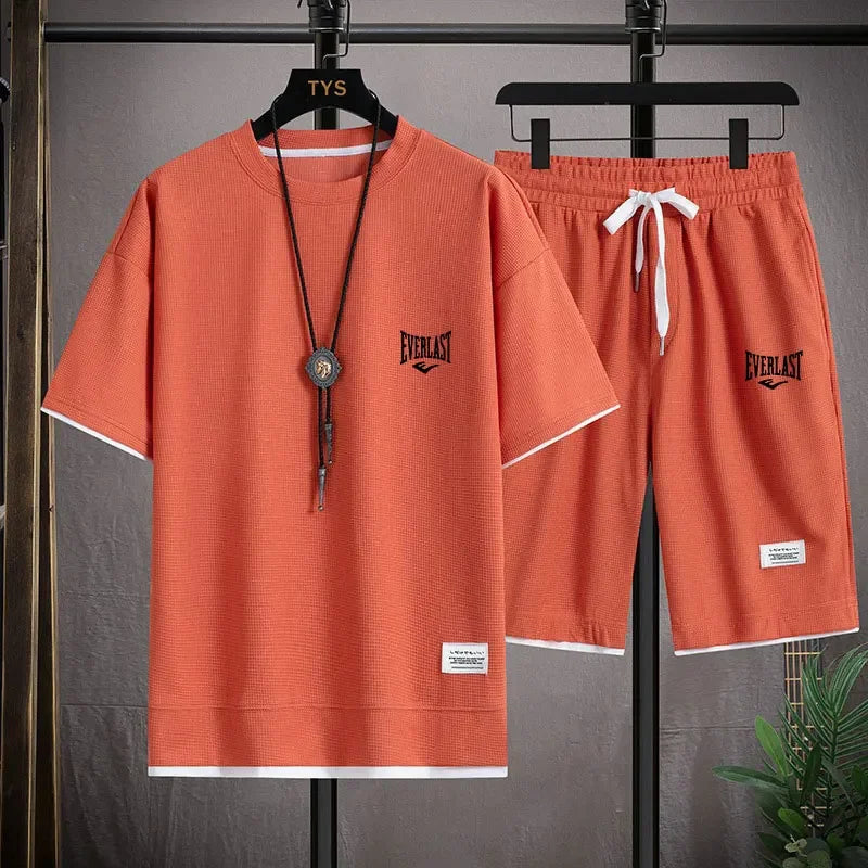 2025 New Fashionable High Quality Waffle 2-piece Men's Shorts Summer Sportswear Men's Fashion Clothing Loose Breathable Daily