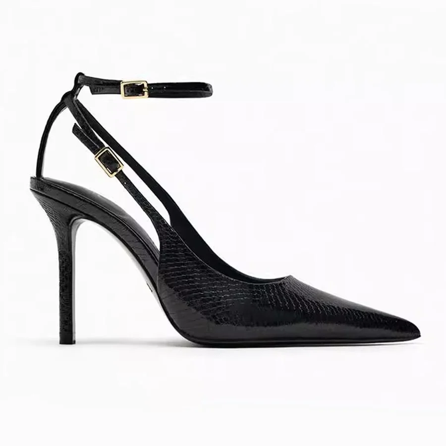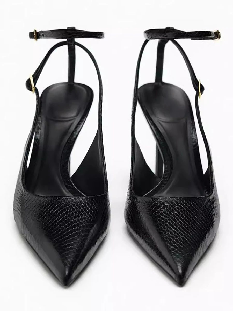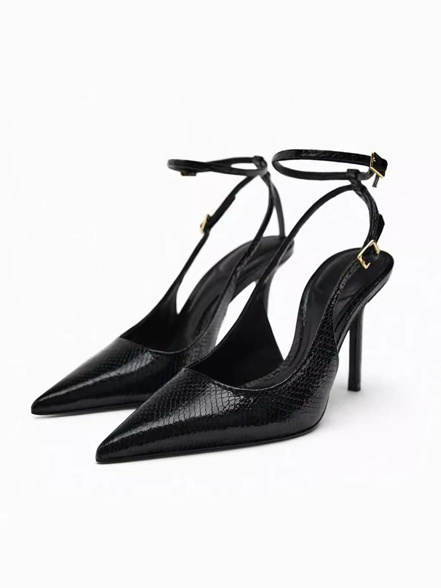 2025 Summer New Sexy Pointed Toe Pumps Black Leather 8cm Thin High Heeled Sandals Snake Pattern Stiletto Mules for Women