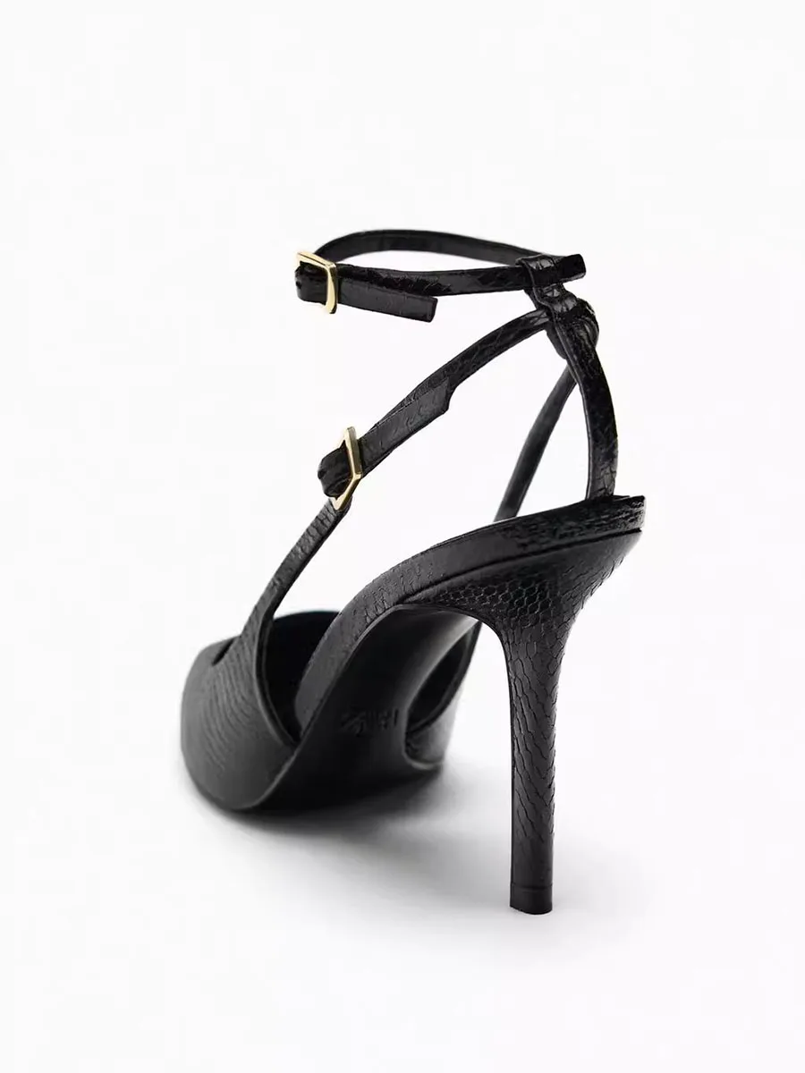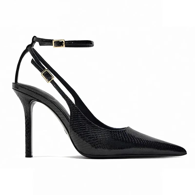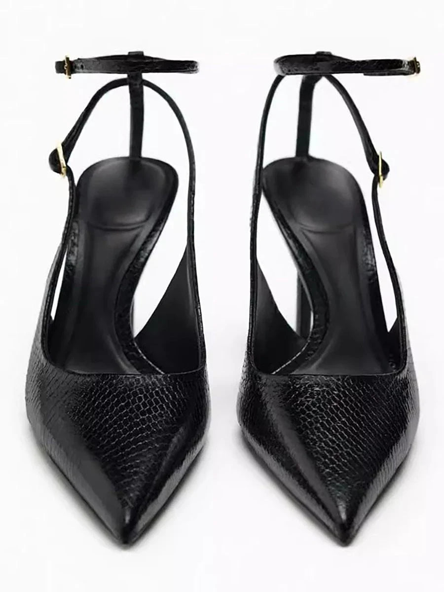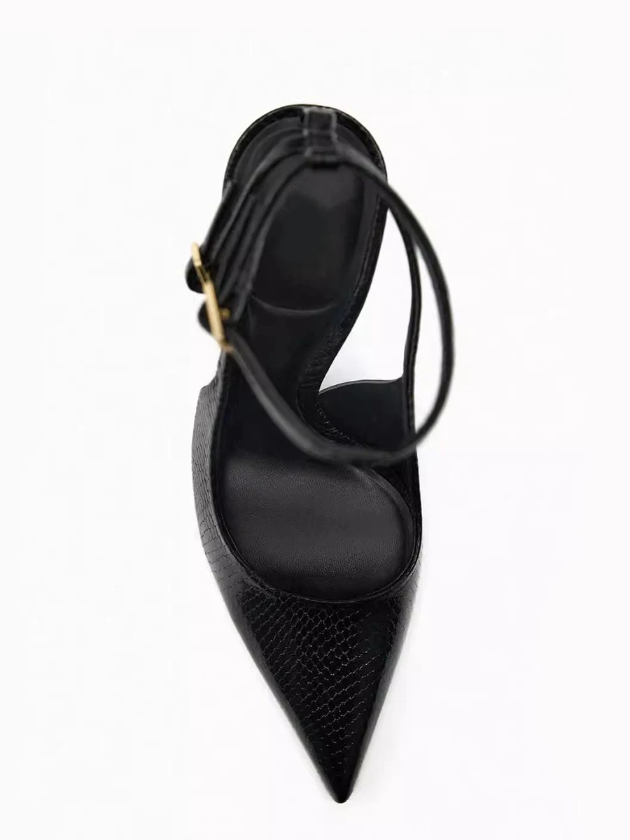 2025 Summer New Sexy Pointed Toe Pumps Black Leather 8cm Thin High Heeled Sandals Snake Pattern Stiletto Mules for Women