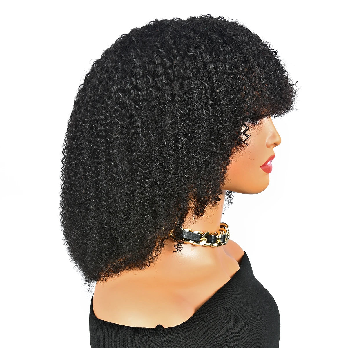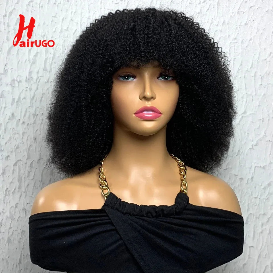 250% Afro Kinky Human Hair Wig With Bangs Machine Made Afro Kinky Curly Wigs For Women Brazilian Glueless Wigs 12“-16“ HairUGo