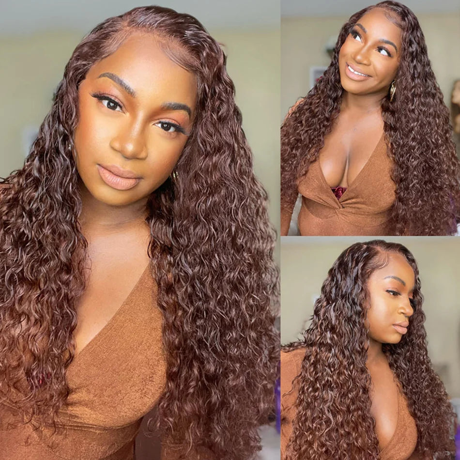 4# Human Hair Bundles Water Curly Human Hair Weave 1 3 4 Bundles Deal Remy Hair Extension for Black Women Chocolate Brown Color