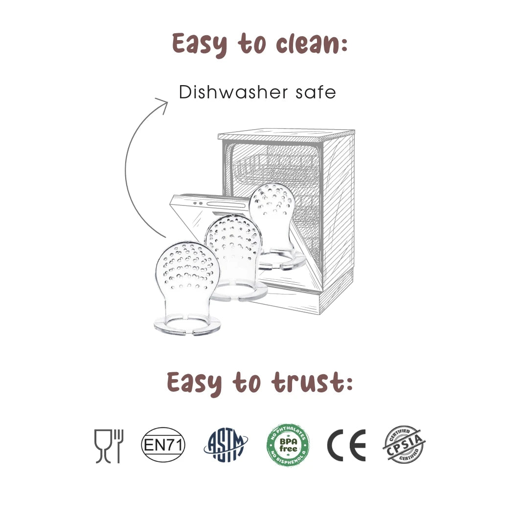 Baby Fruit Feeder Teether Pacifier with Baby Food Freezer Tray Set Silicone Freezable Teether for Fruit Purees Self Feeding