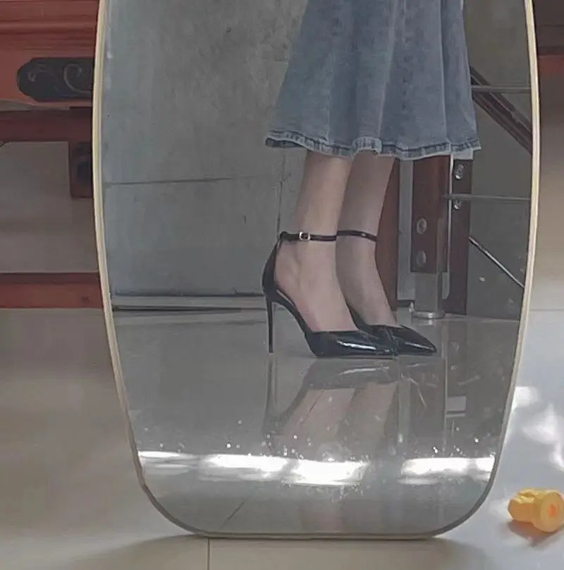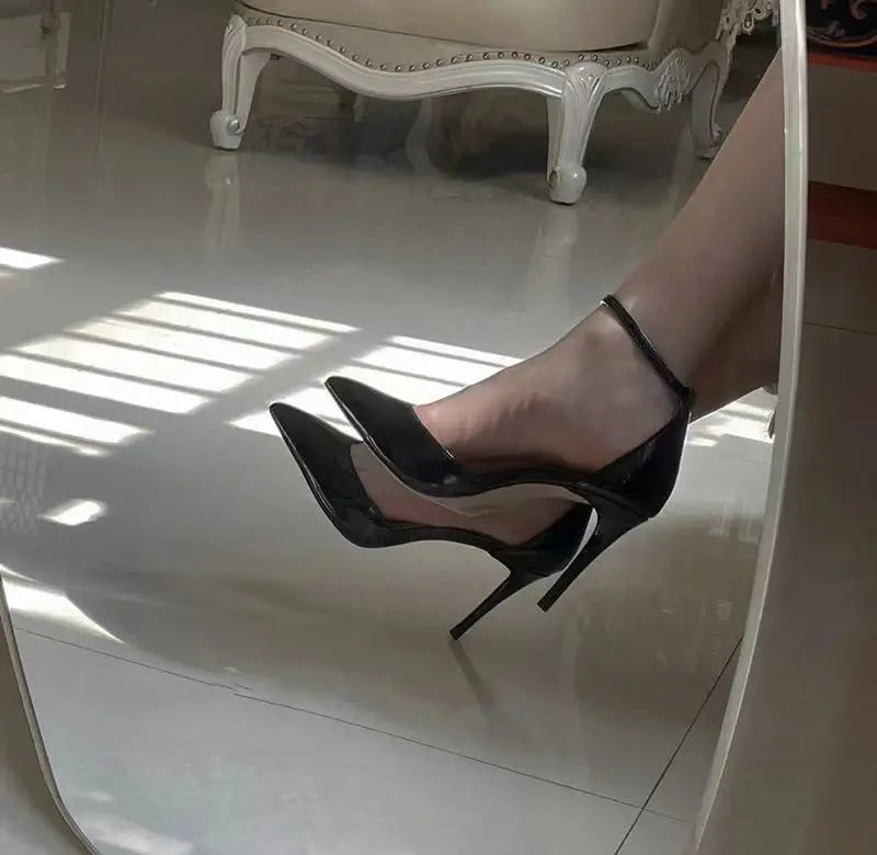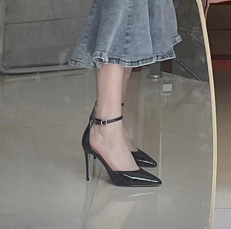 Bla Patent Leather Hollow out Strap High Heels Sandals Women's Pointed Toe Thin Heel Sexy 2025 New Spring Autumn
