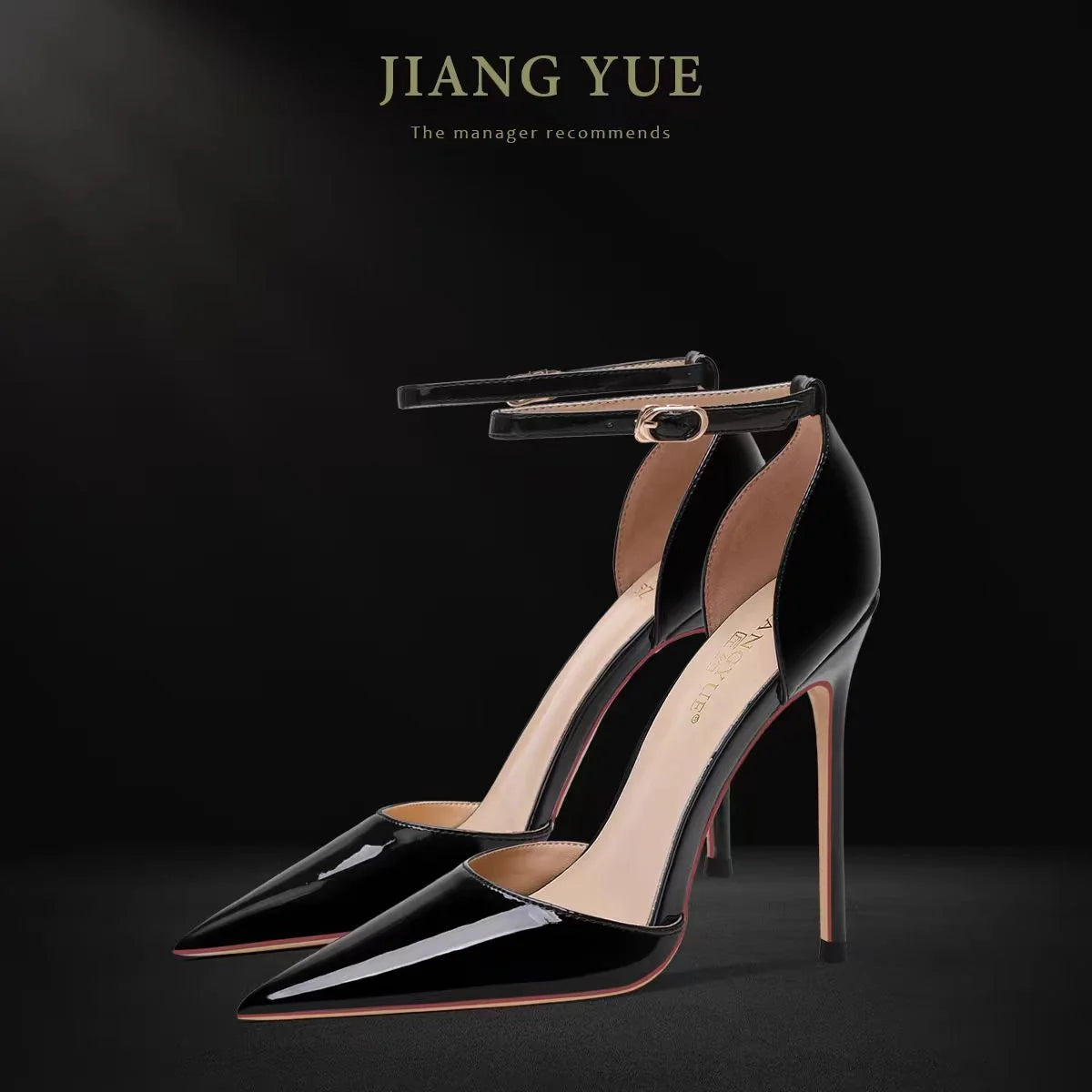 Elevate your style with these sexy black patent leather sandals featuring a chic pointed toe and thin heel design.