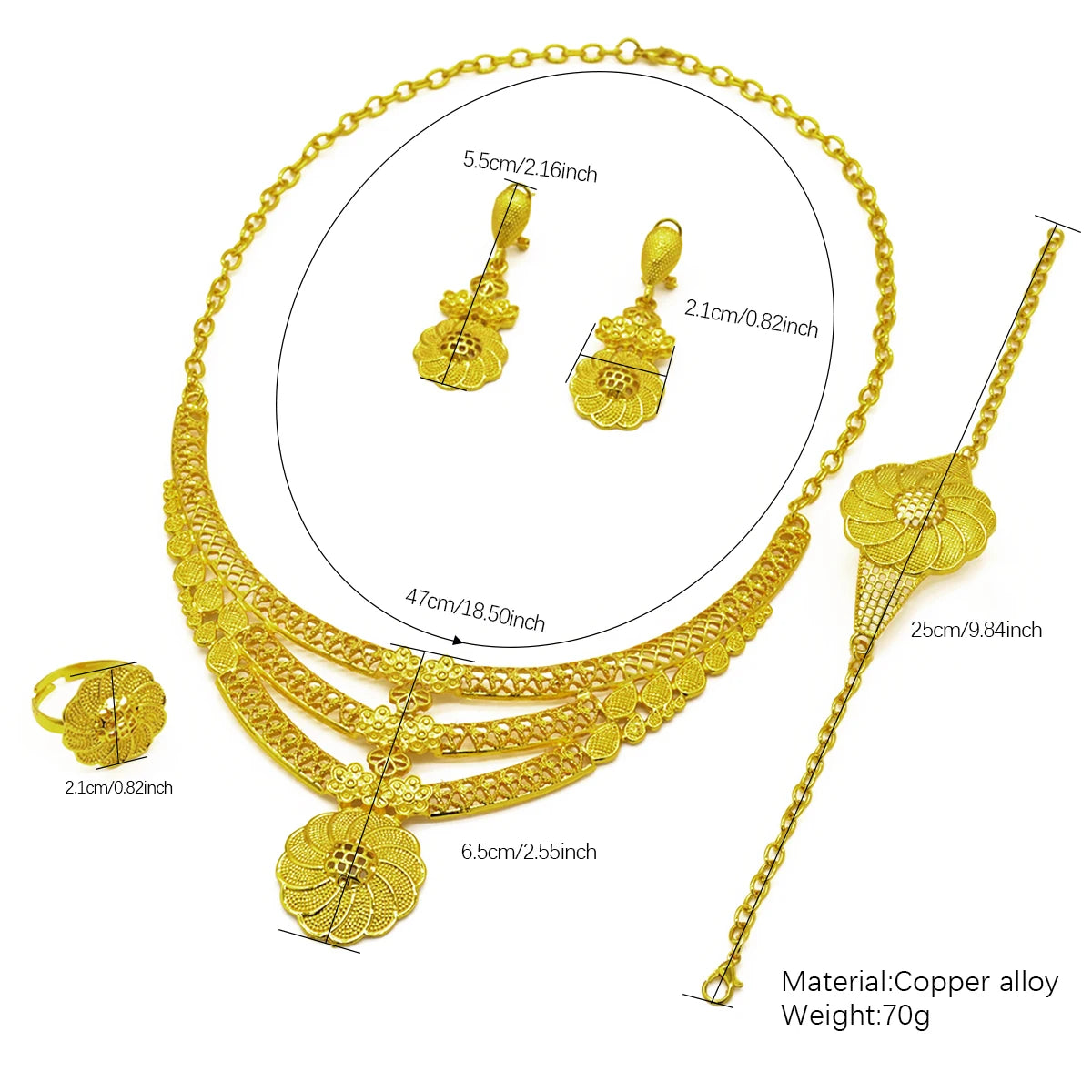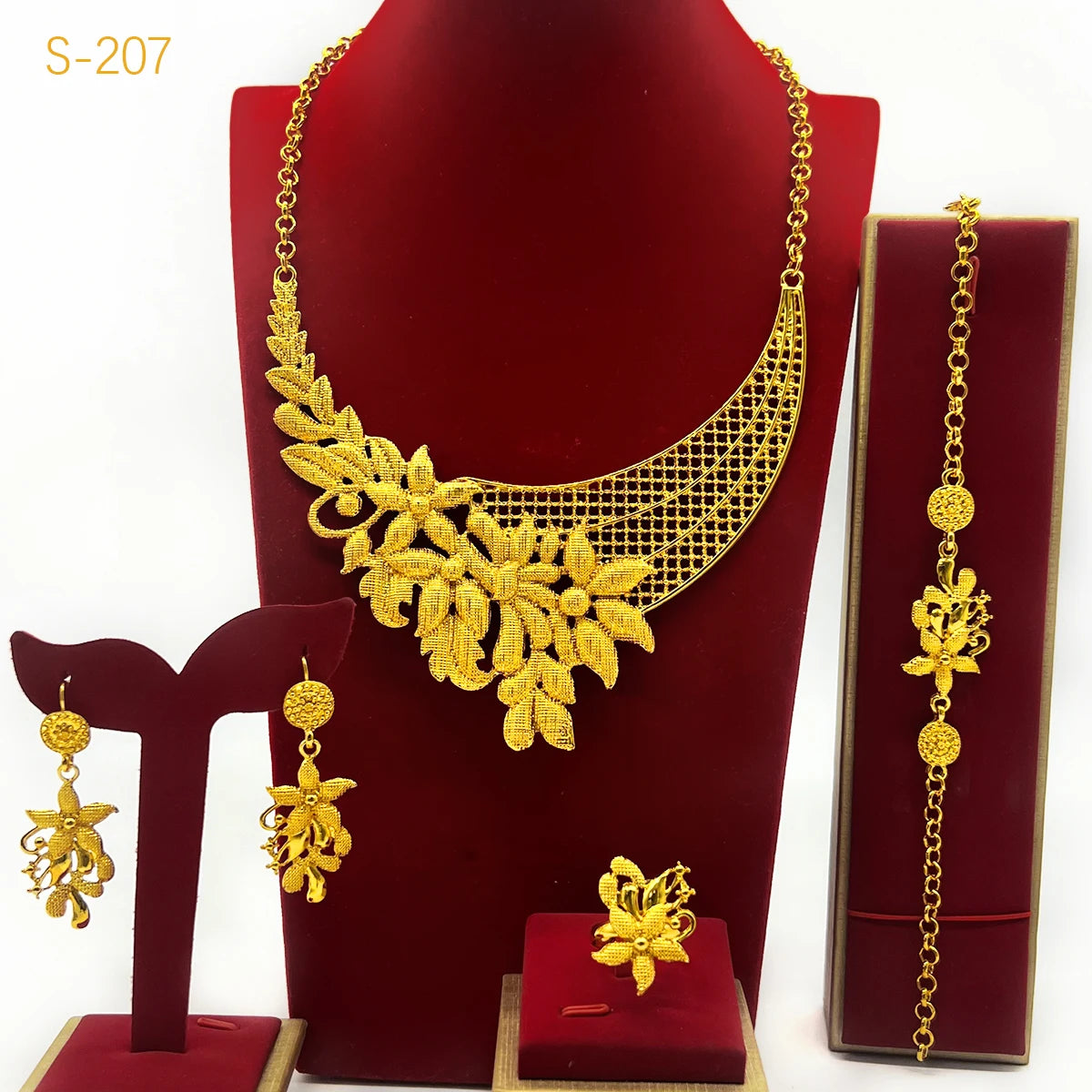 Brazilian 24K Gold Color Jewelry Sets For Women Wedding Dubai Necklace Earrings Nigerian Indian Bridal Set Party Gifts Wholesale