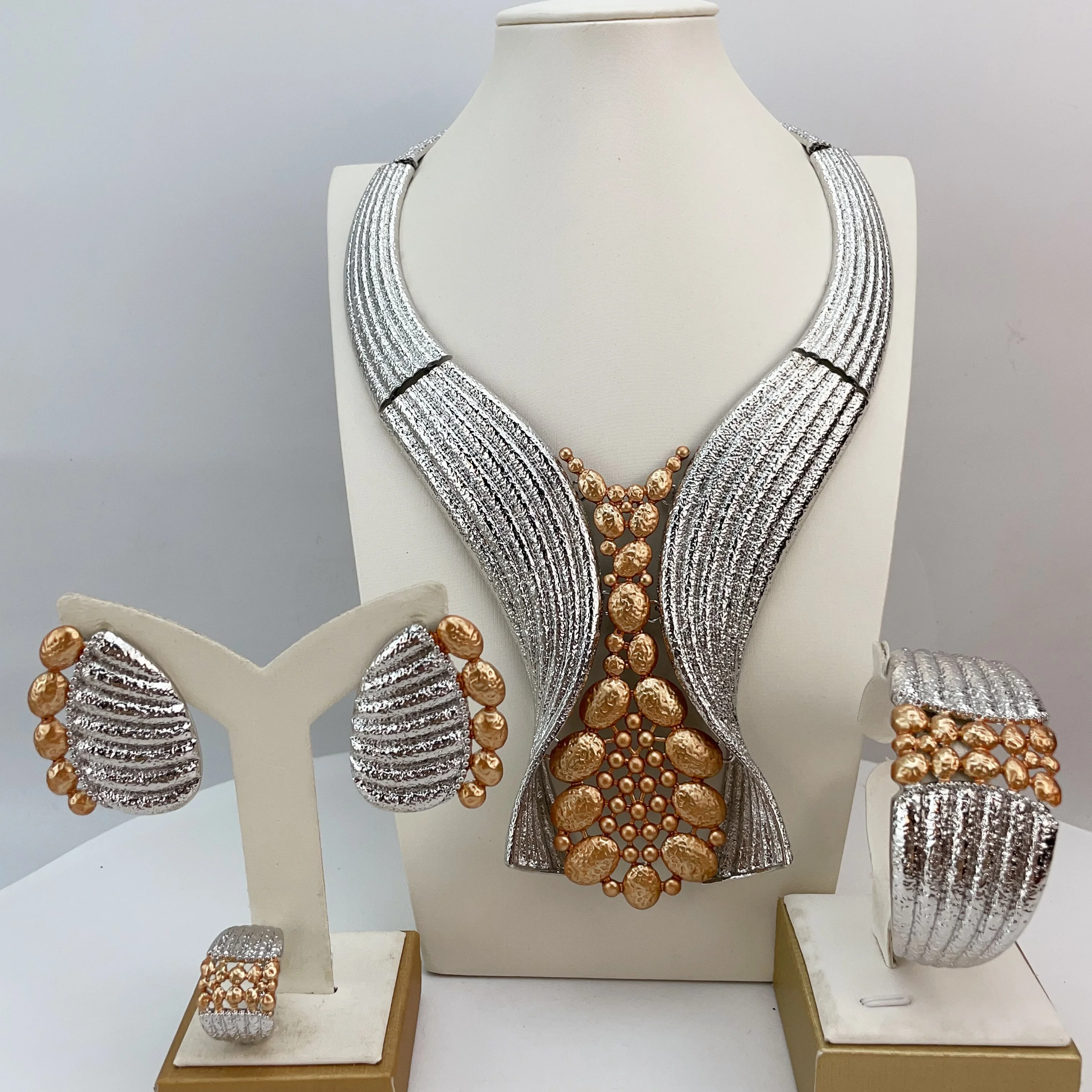 Brazilian Simple Style Big Bold Necklace Luxury Quality African Bride Jewelry Set For Women Party Gifts FHK22874