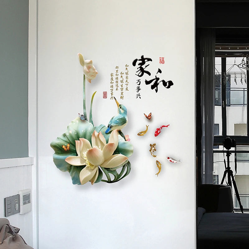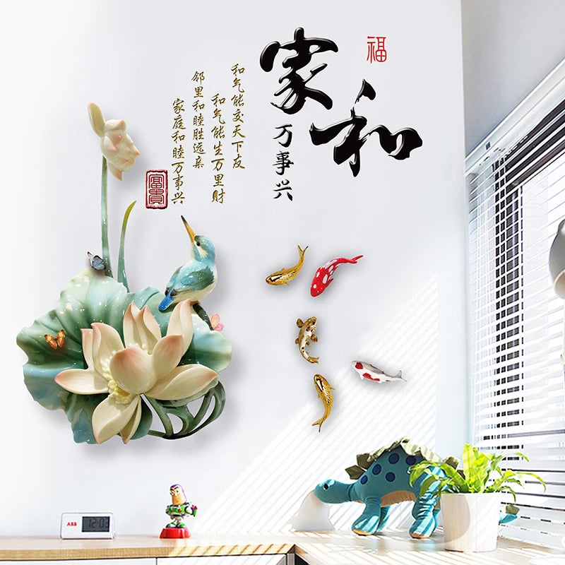 Chinese Style Lotus Flower Fish Wall Stickers for your Living Room Walls Bedroom Kitchen Home House Decoration Decor Decals
