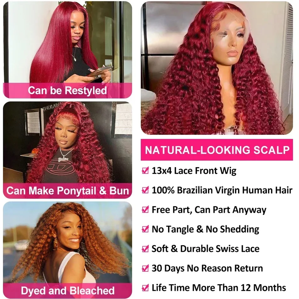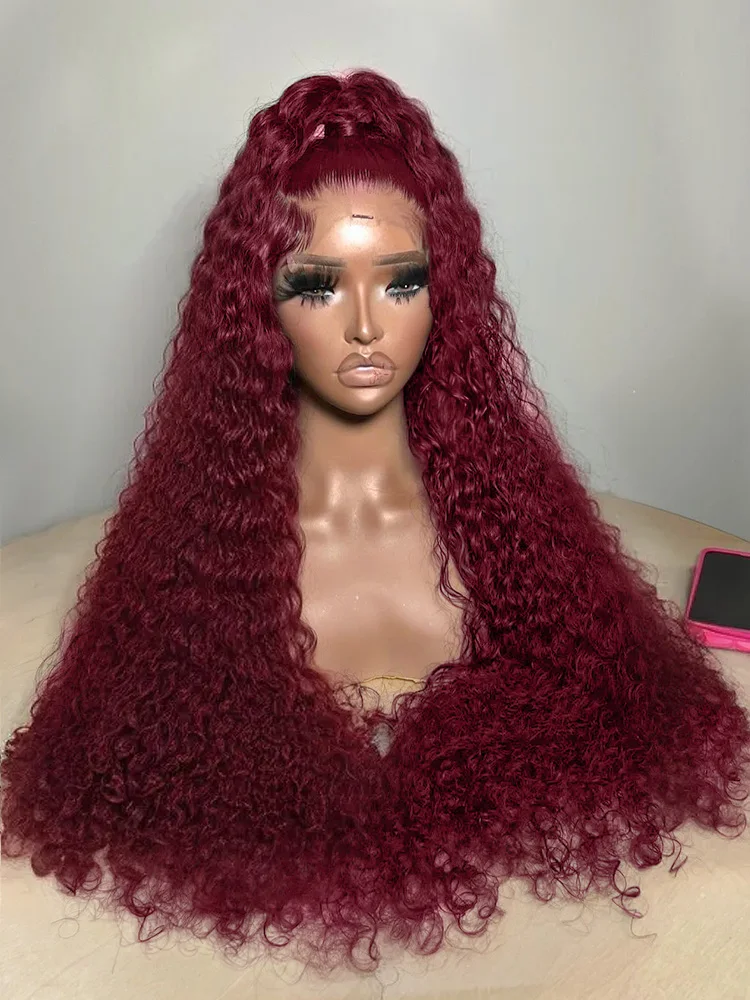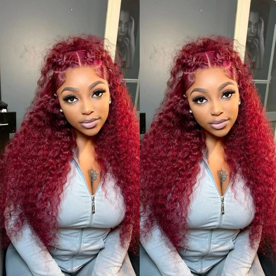 Deep Wave 99J Burgundy 13x6 Transprent Lace Frontal Wig Human Hair 13x4 Curly 30 40 Inch HD Lace Front Wigs Red Wine Water Wave