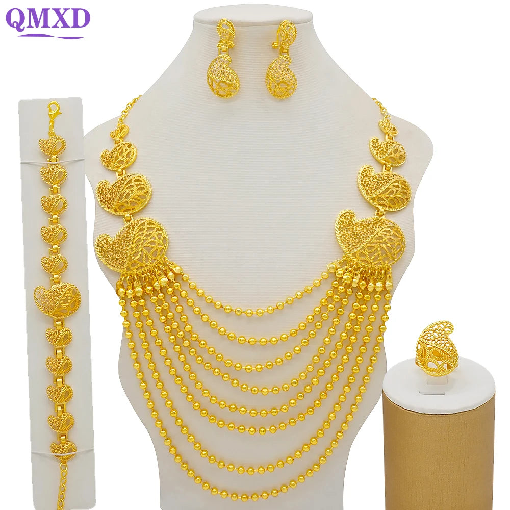 Dubai African Gold Color Jewelry Sets For Women Indian Jewelery Nigerian Necklace Ring Earring Wedding Accessories