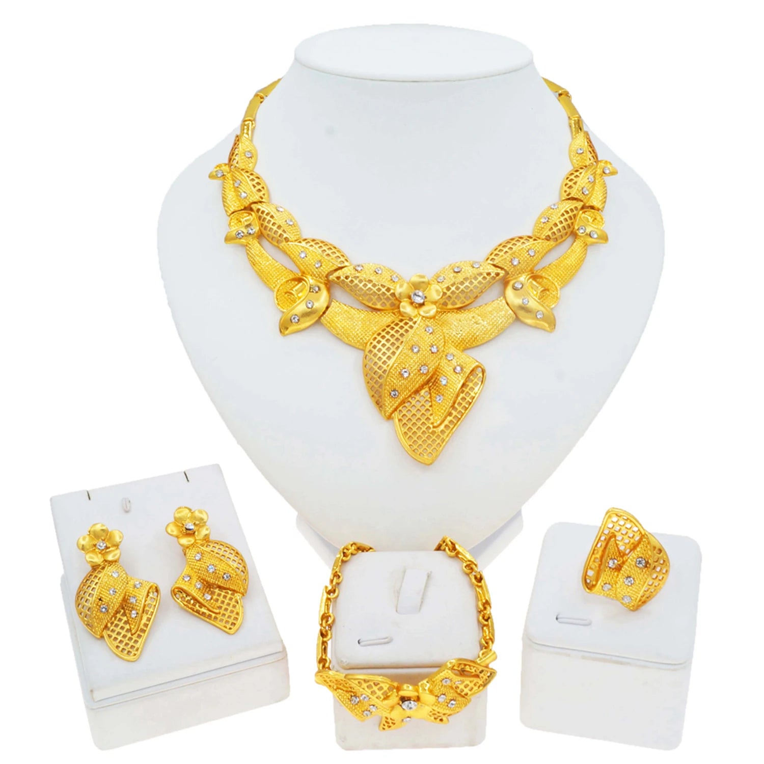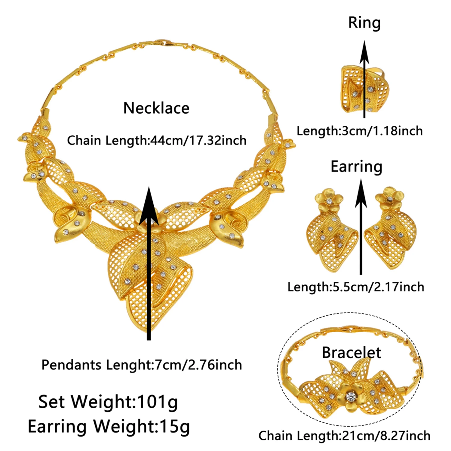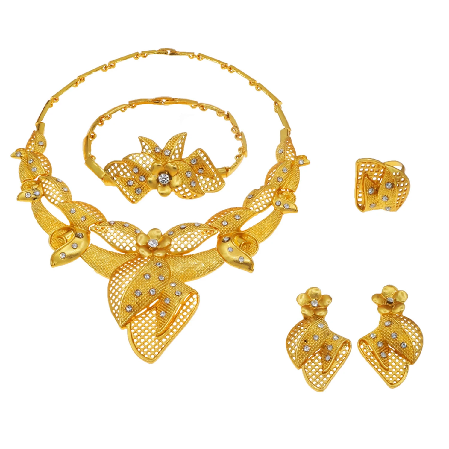 24K Gold Plated Jewelry Set Wedding African Necklace Earrings Women Bridal Nigeria Dubai 4 Piece Party Favors |