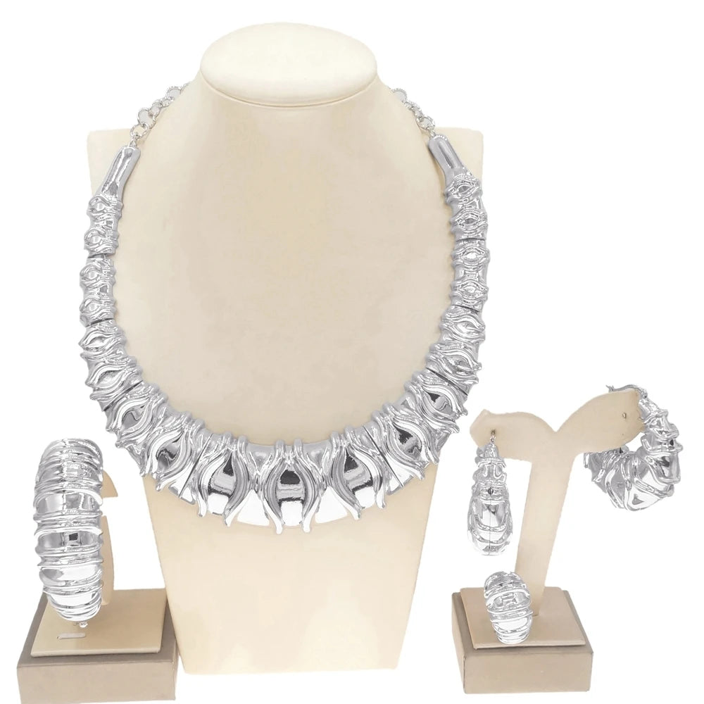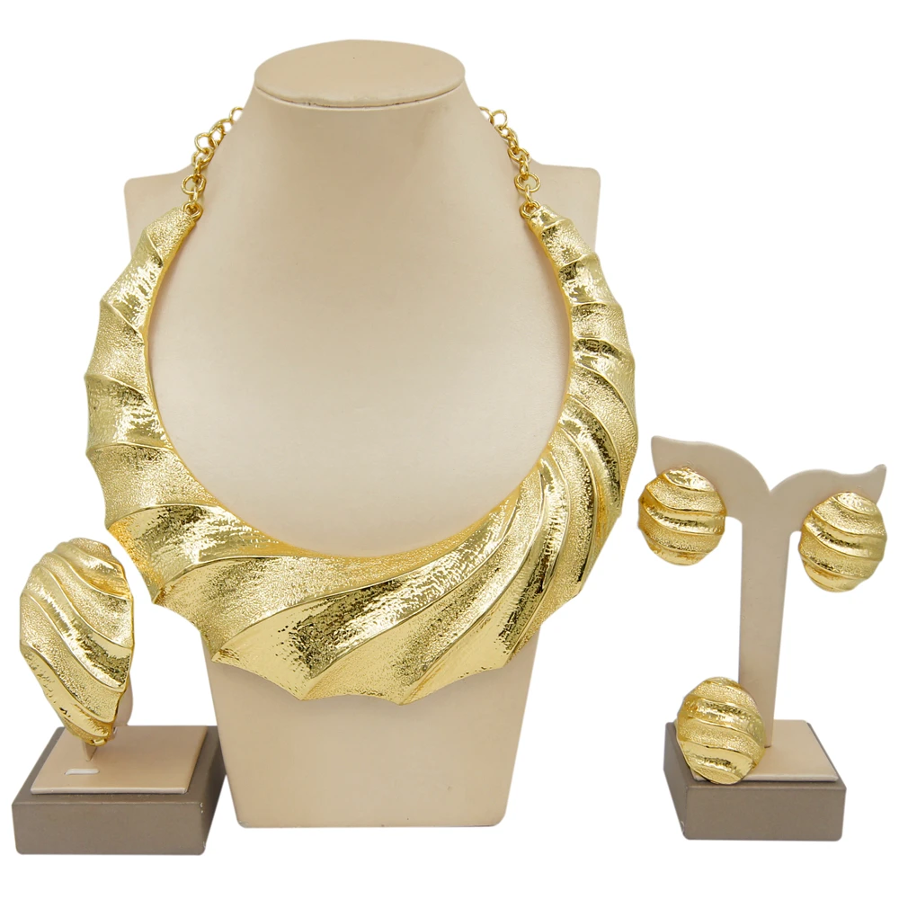 Fashion Dubai Gold Plated Women Jewelry Italian Design Style Big Necklace Banquet Festive Earrings Ring Accessories