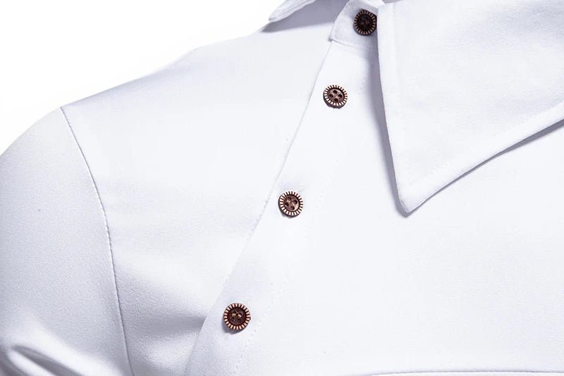 Fashion Man Stand Collar Shirt Personality Oblique Button Irregular Long Sleeve Business Festival Hombre Mens Dress Shirts