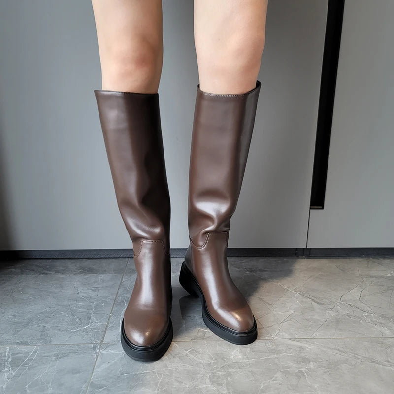 FEDONAS 2024 Ins Genuine Leather Knee High Boots For Women Thick Heeled Autumn Winter Warm Shoes Woman High Motorcycle Boots