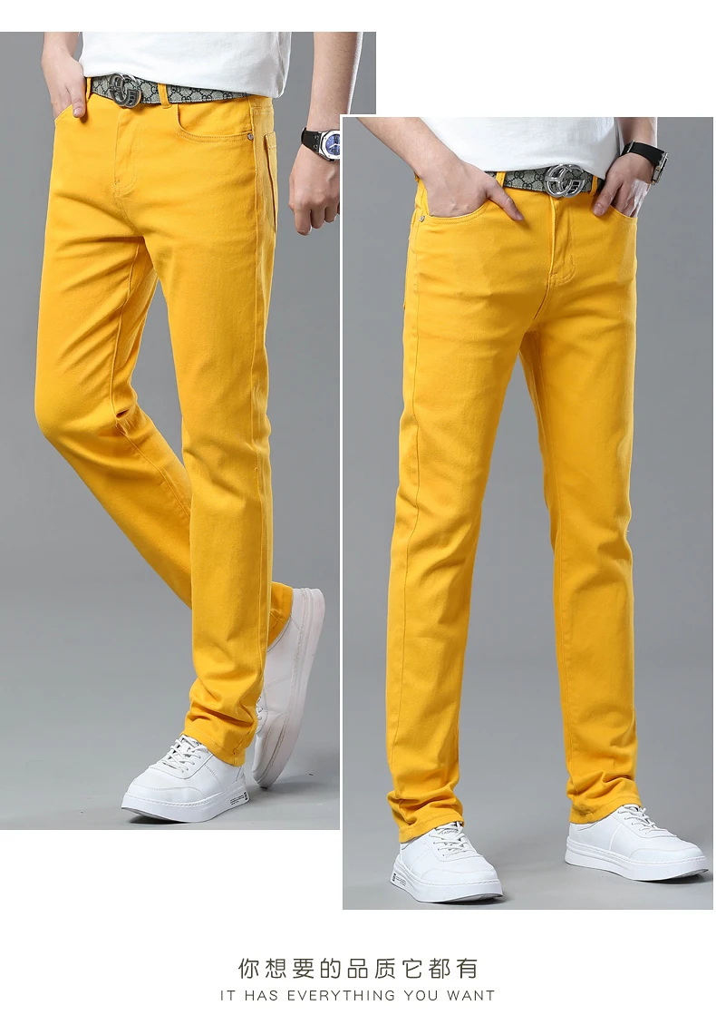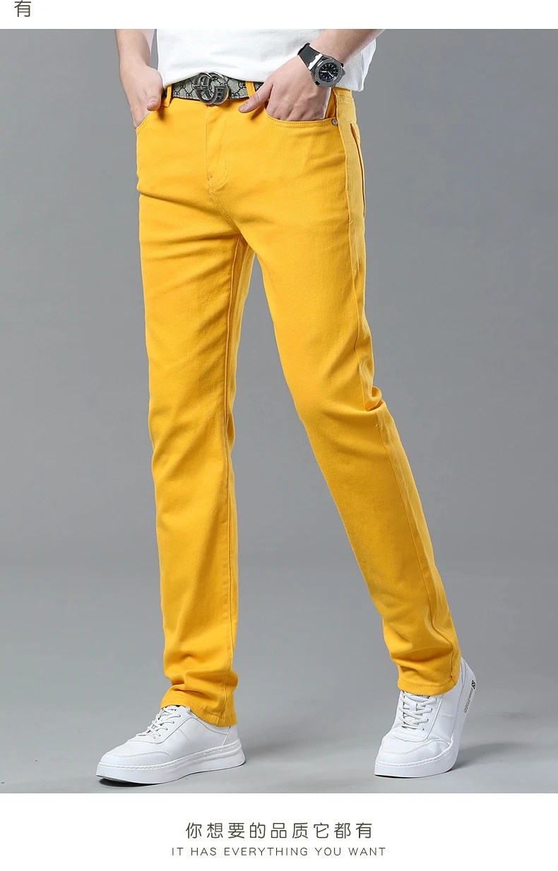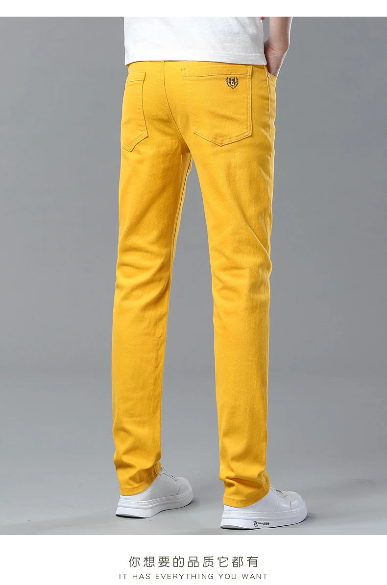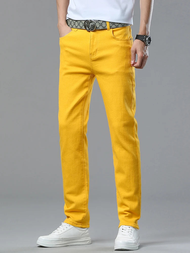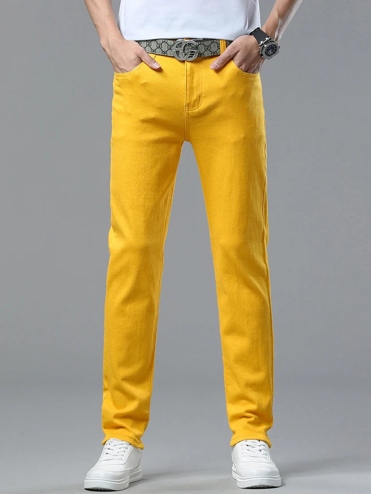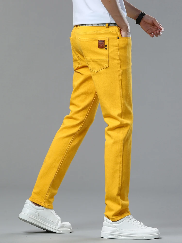 Four Season New Men's Yellow Jeans Fashion Business Casual Straight Denim Stretch Trousers All-match Men's Casual Pants Jeans