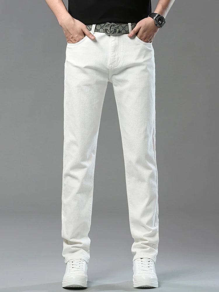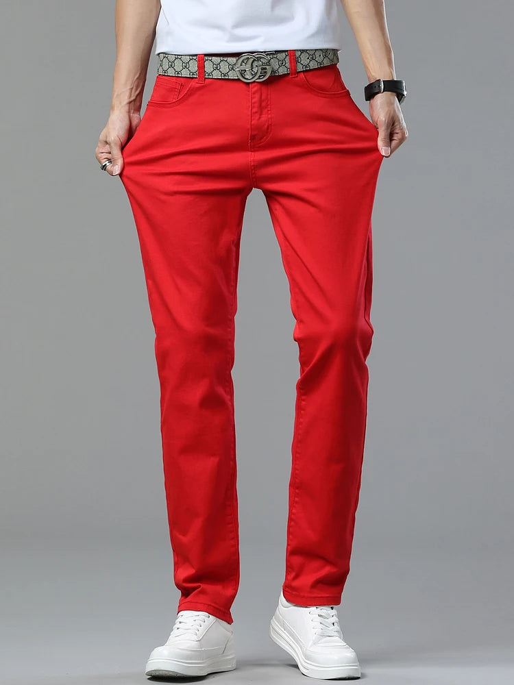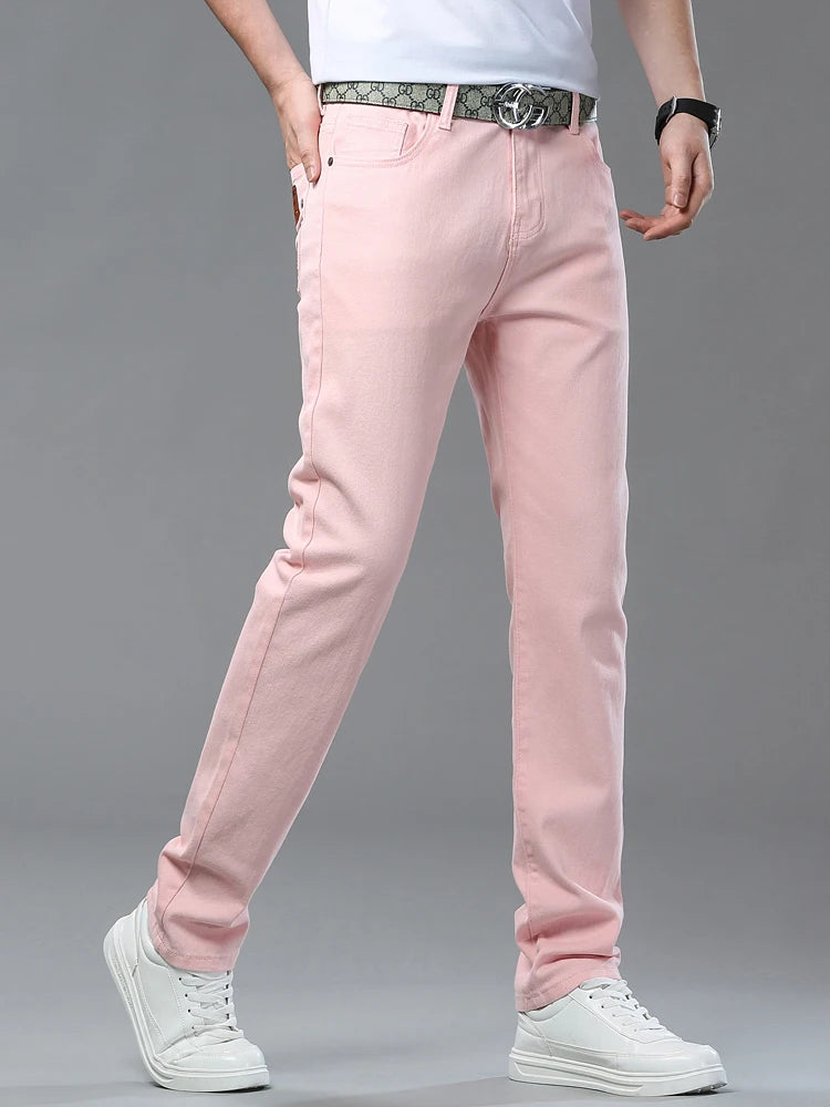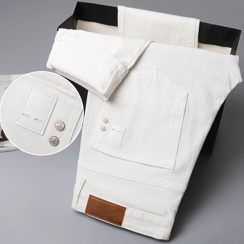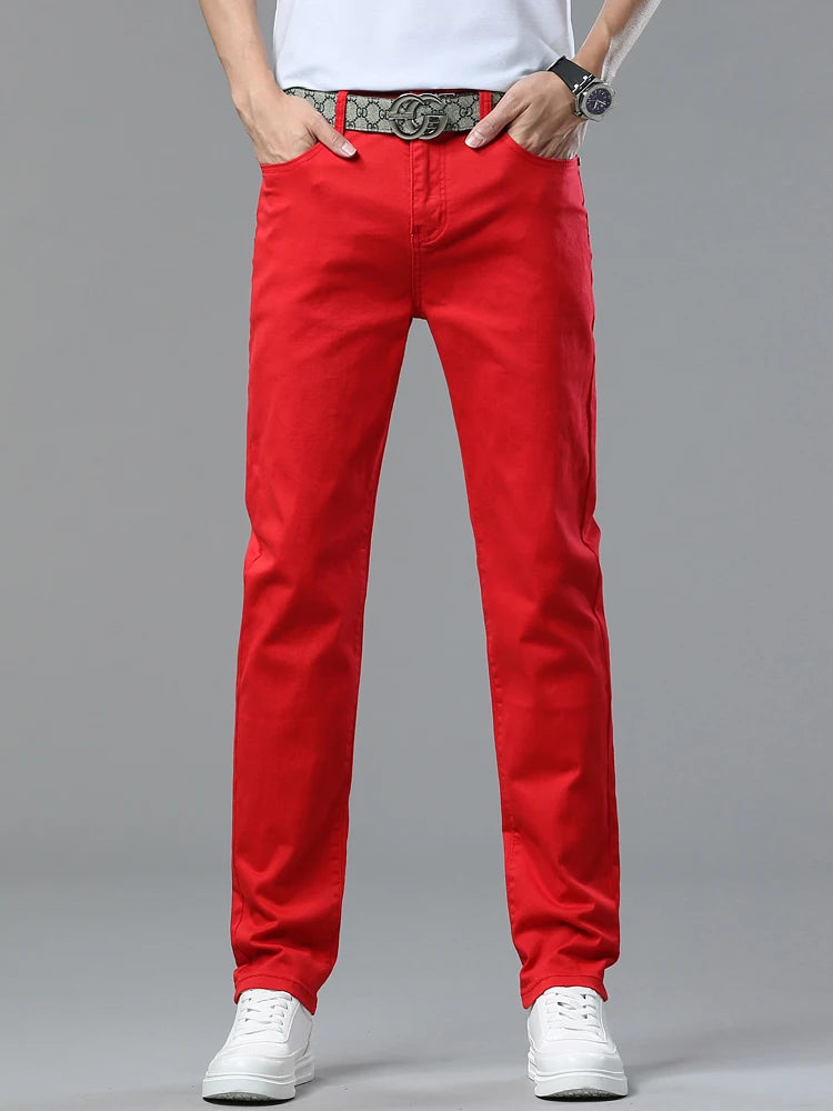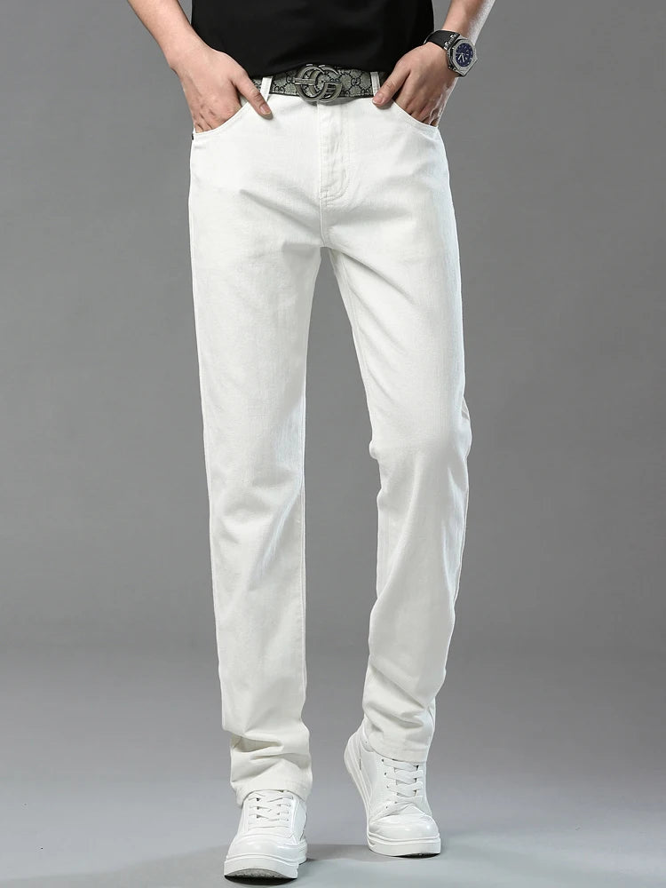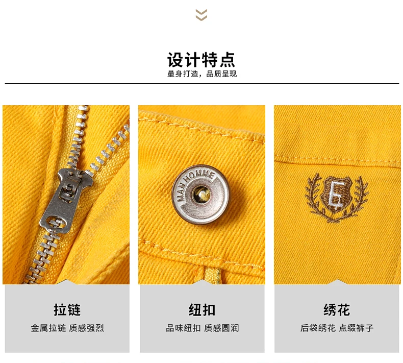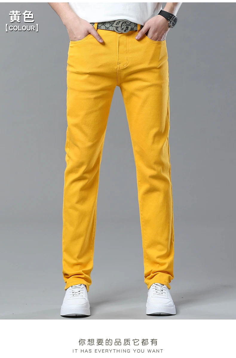 Four Season New Men's Yellow Jeans Fashion Business Casual Straight Denim Stretch Trousers All-match Men's Casual Pants Jeans