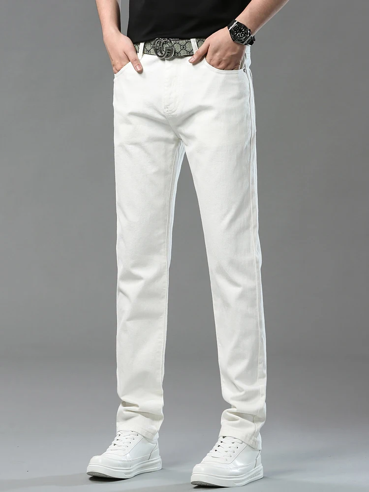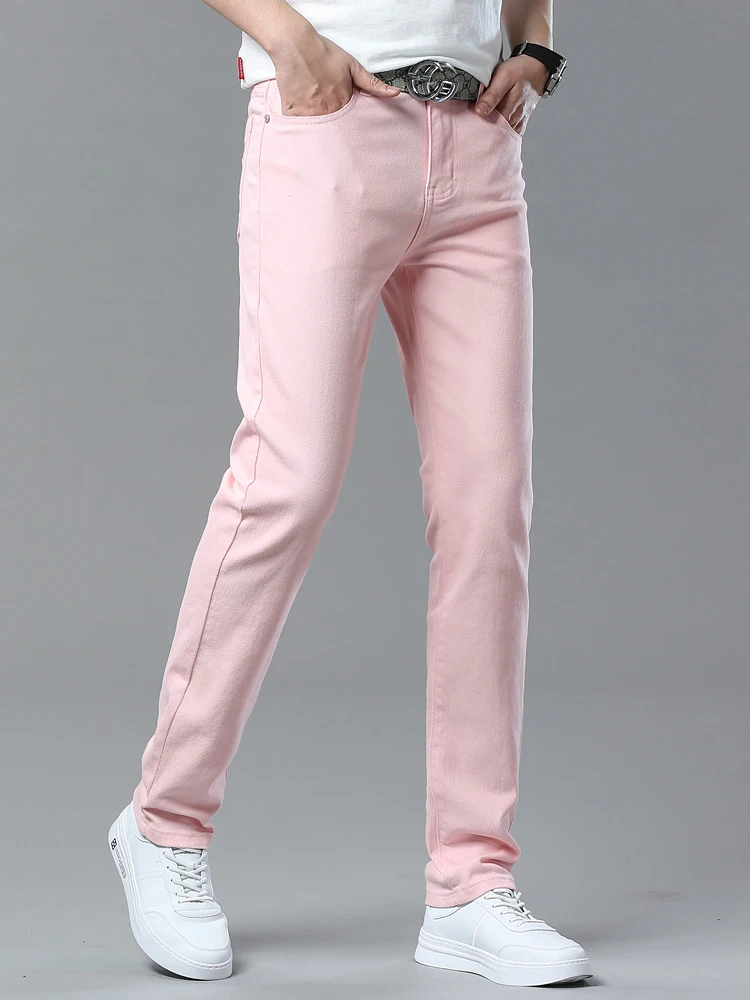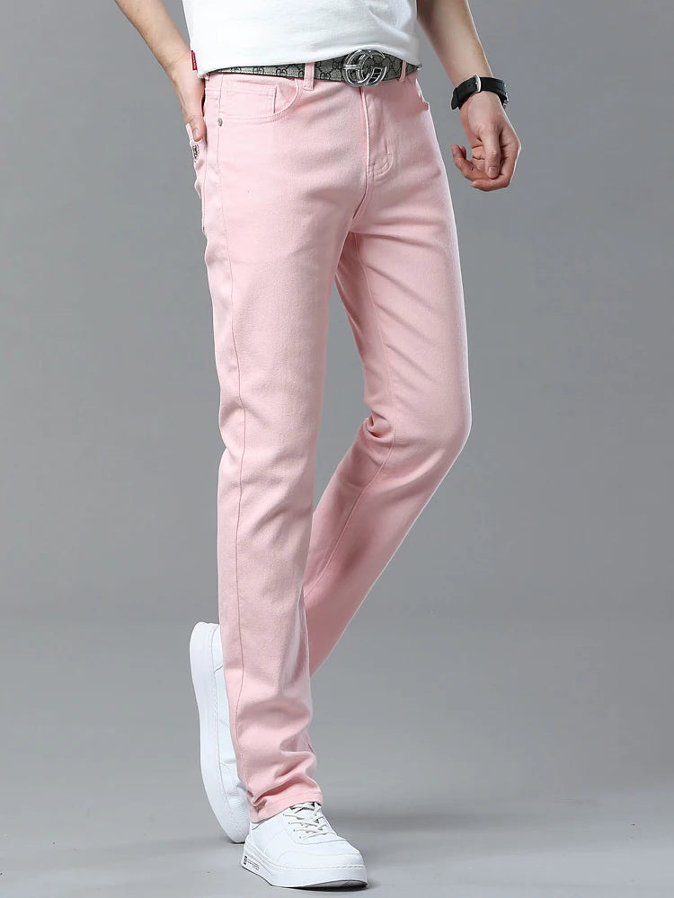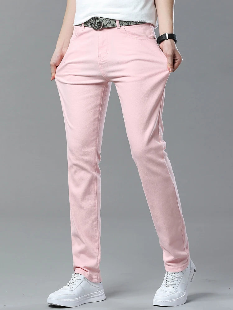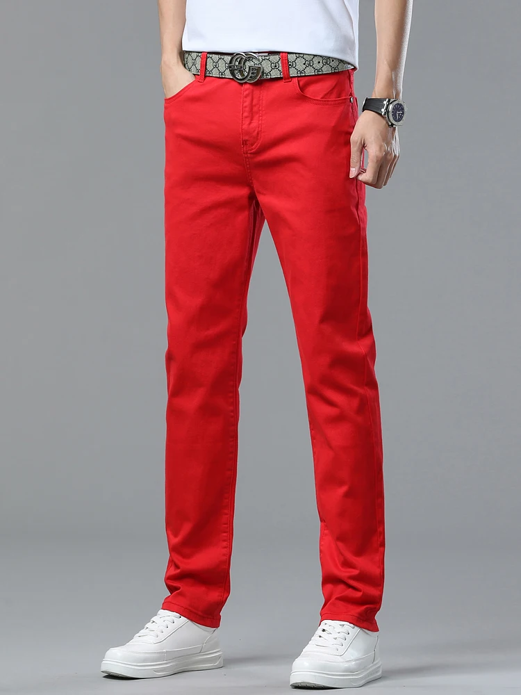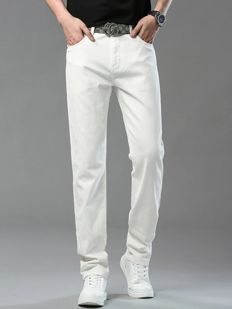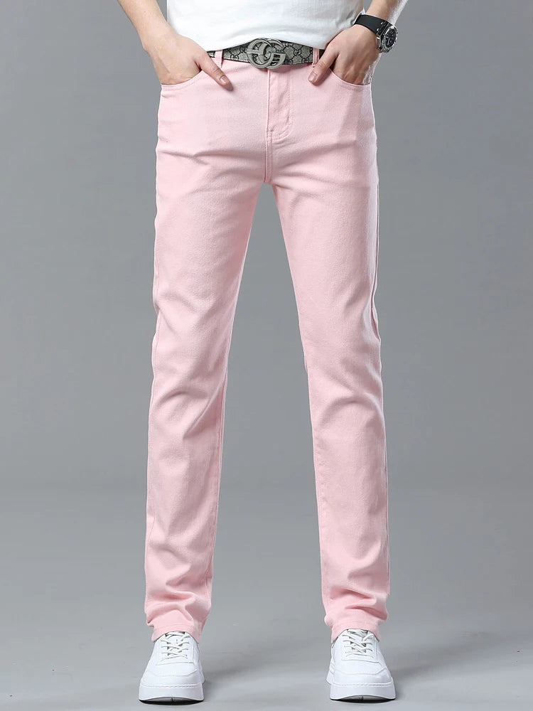Four Season New Men's Yellow Jeans Fashion Business Casual Straight Denim Stretch Trousers All-match Men's Casual Pants Jeans
