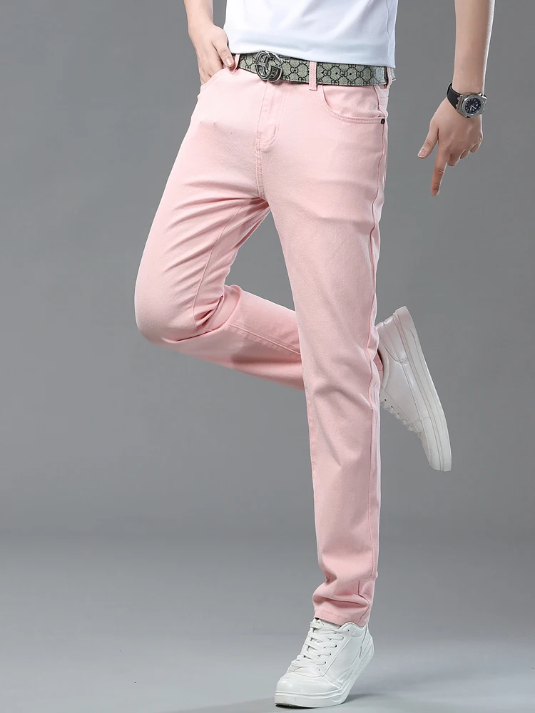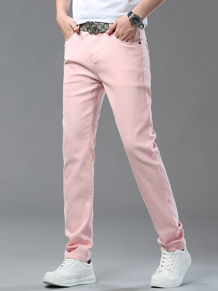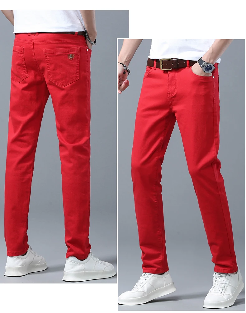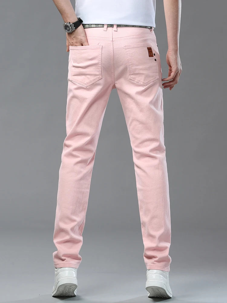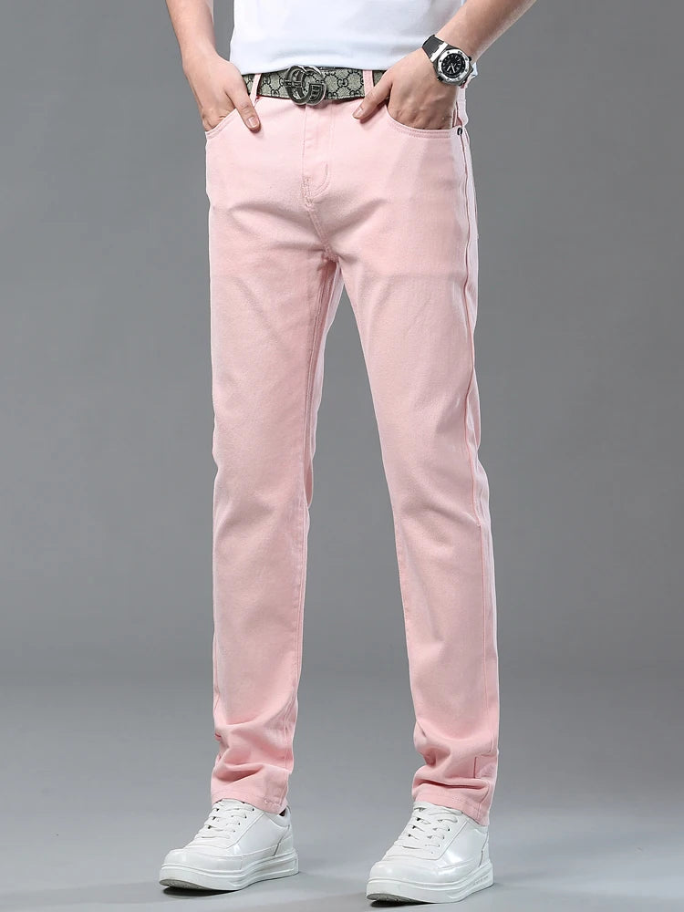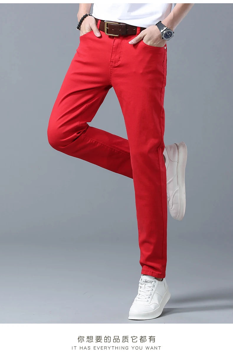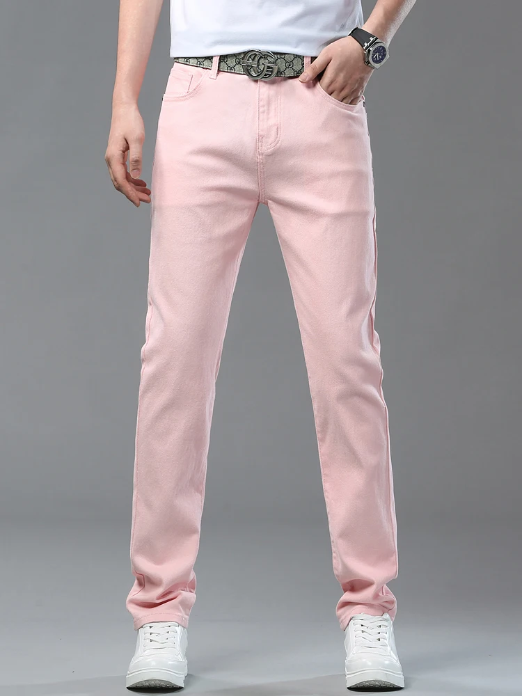 Four Season New Men's Yellow Jeans Fashion Business Casual Straight Denim Stretch Trousers All-match Men's Casual Pants Jeans