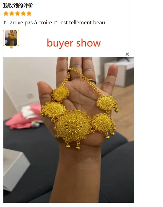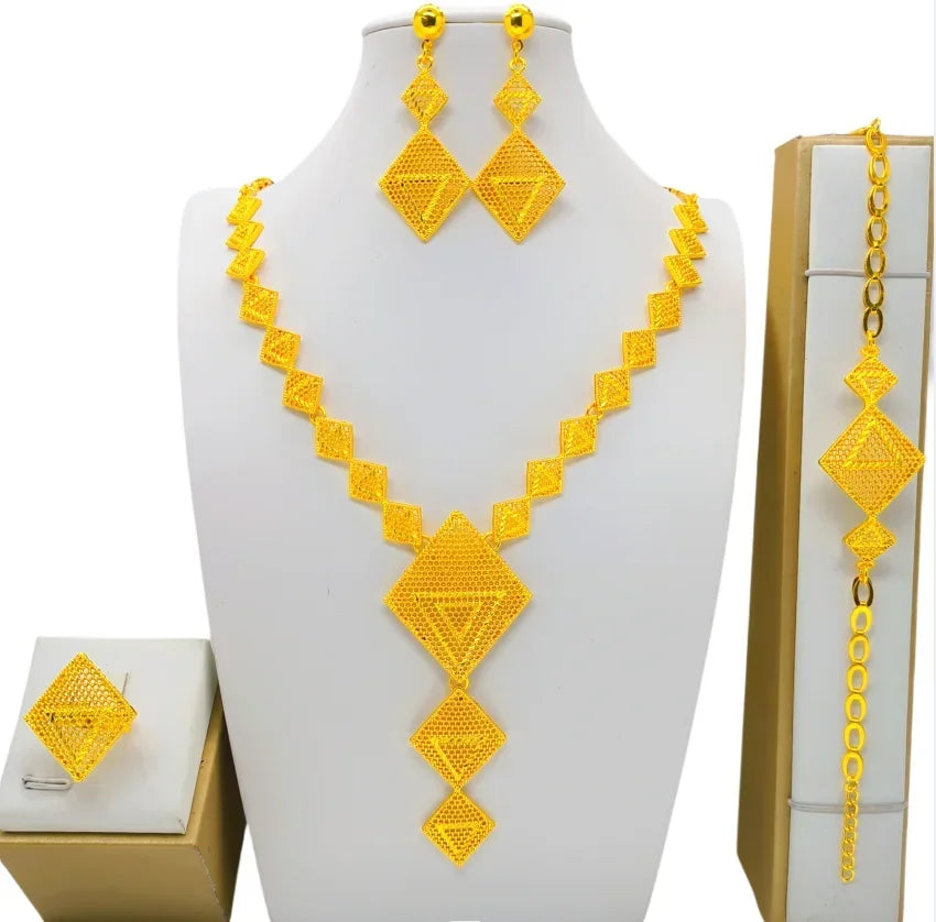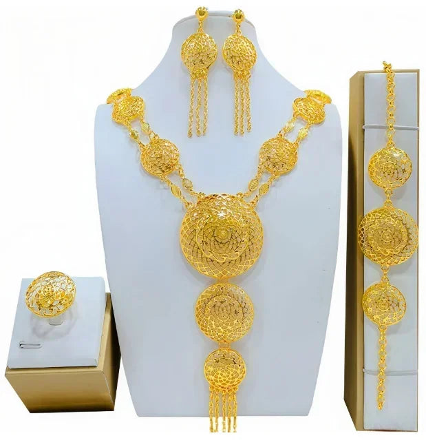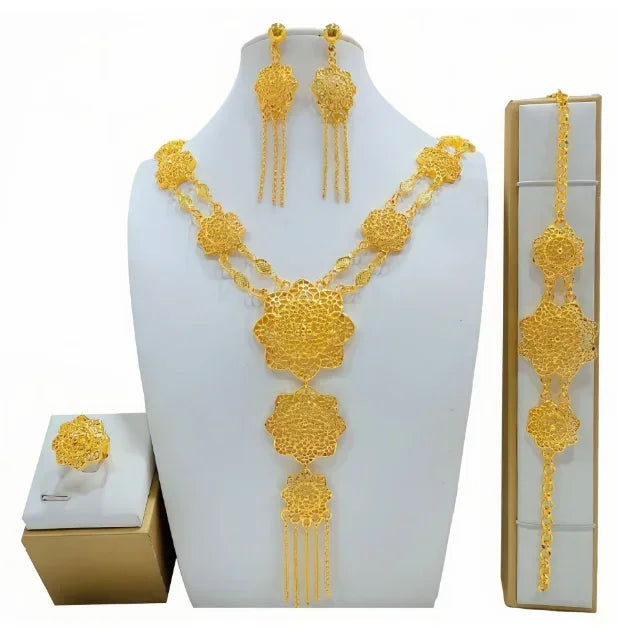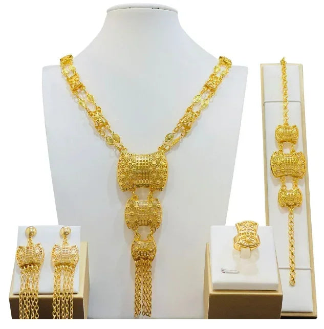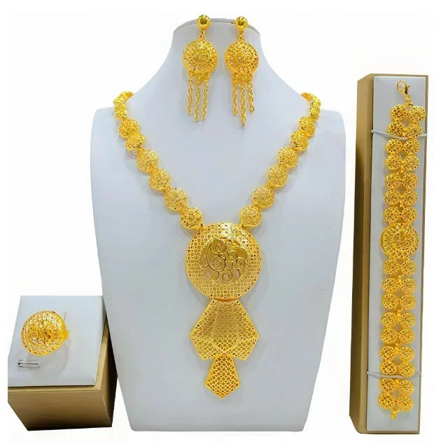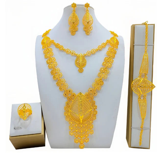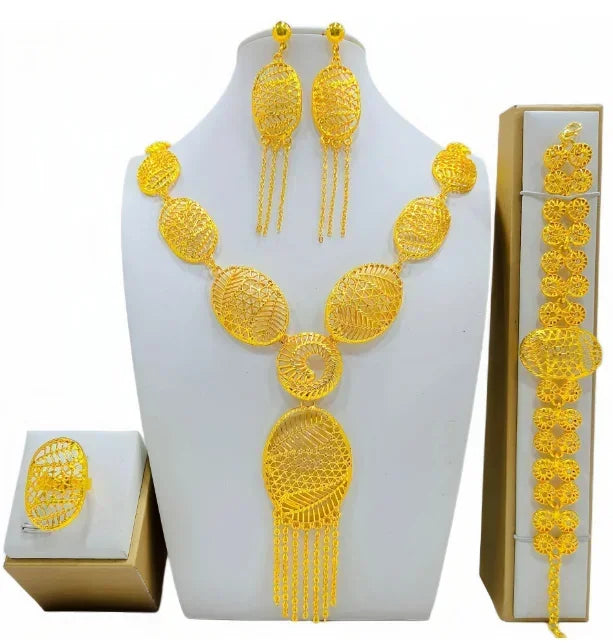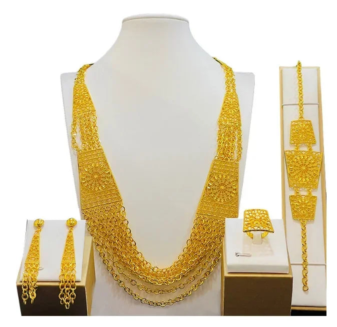 France Ethiopian Gold Color Jewelry Set For Women Dubai Necklace Bracelet Earrings Ring Set African Wedding Choker Wholesale