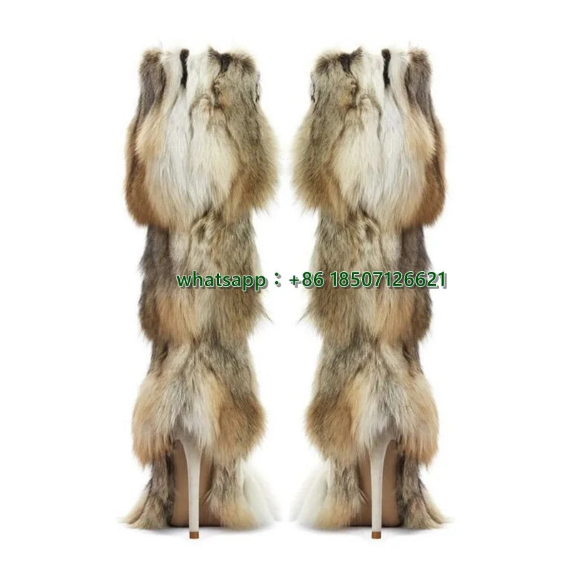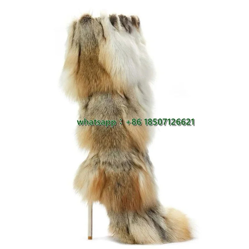 Furry Stiletto Pointed Toe Mid-Calf Boots With Unique Personality And Special Calf Boots For Women