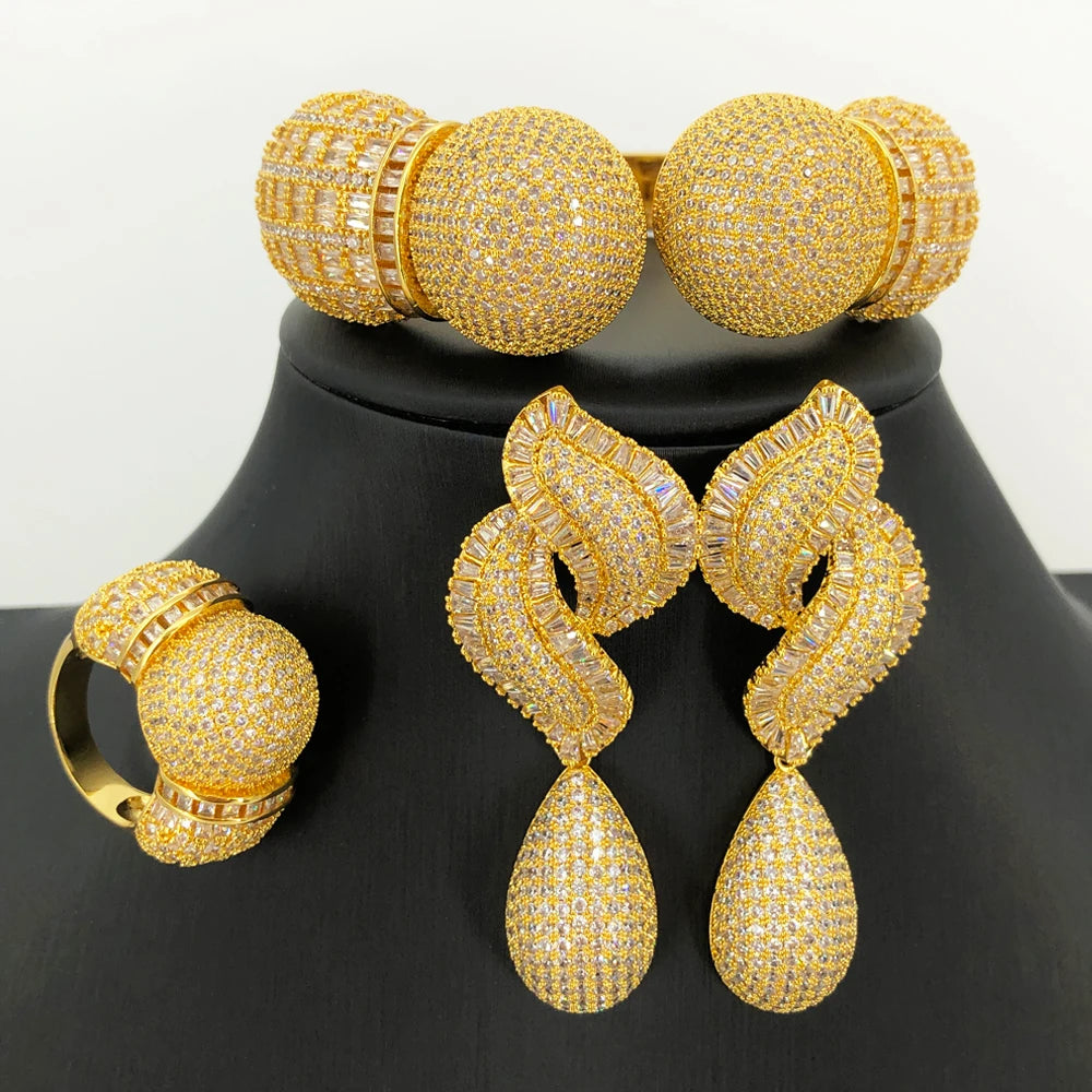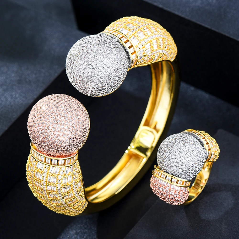 GODKI Famous Brand 3pcs Ball African Dubai Jewelry Sets For Women Wedding Party Zircon Wedding Lagos Bridal Jewelry Gift