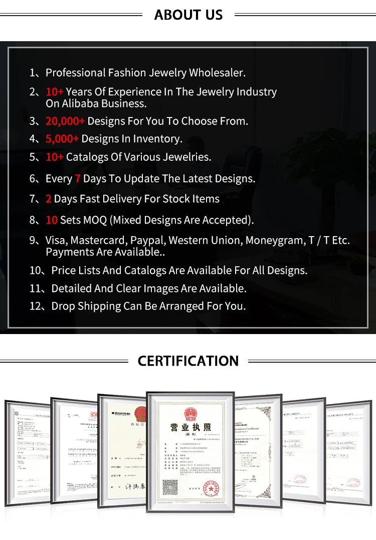 Guangzhou Yulaili Fashion Jewelry Co.,Ltd is a more than 13 years professional manufacturer and exporter of fashion jewelry and accessories,with high quality material,unique design, fine workmanship and novel style.Our factory area is 500 square with 50-500 employee. We mainly speacialized in producing alloy, brass, sterling silver, 316 steel jewelry and so on. All of our quality are under EU Testing Certificate standard. Kindly welcome OEM order.