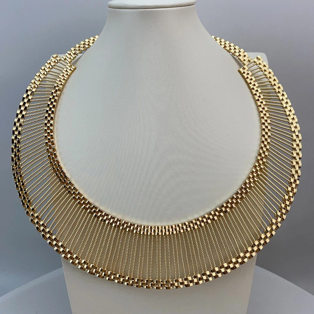 Jewelry Set For African Women Brazilian Gold Choker Necklace Ring Earring Bracelet Huge Fine Luxury Bride Party Jewelry FHK22583