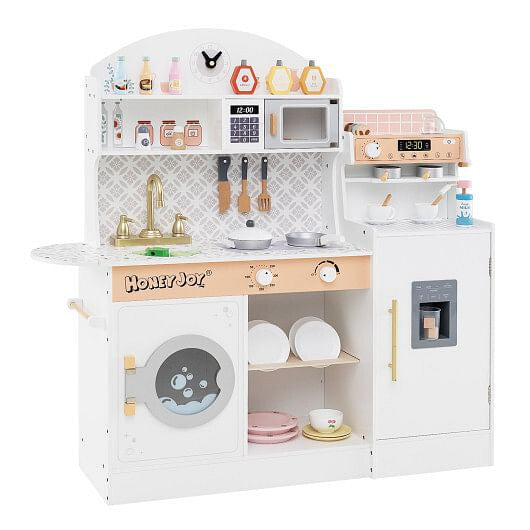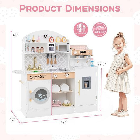 Kids Kitchen Set Wooden with Coffee Makers and Accessories-White