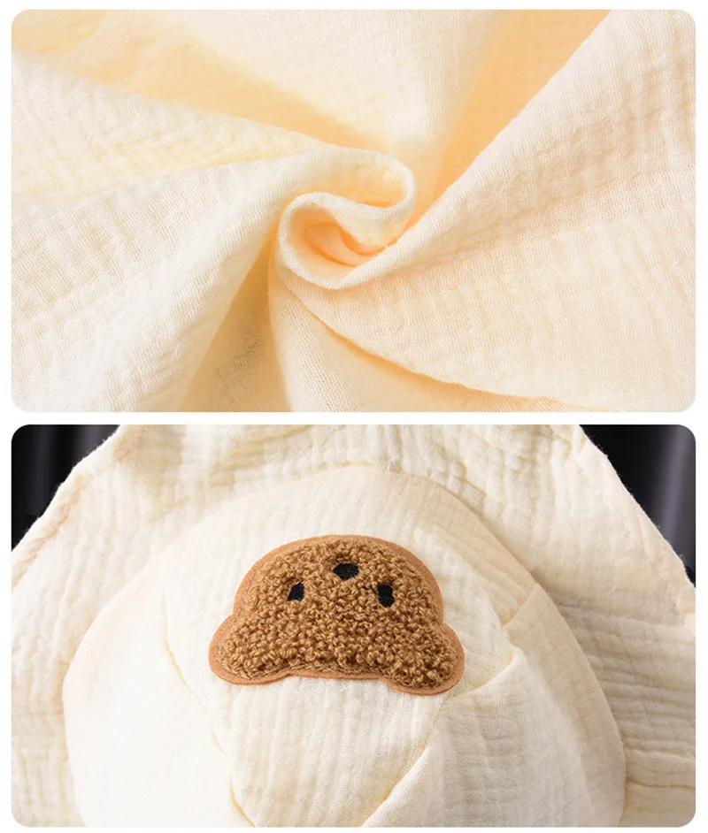 Korean Baby Romper Hat Set Muslin Short Sleeves Jumpsuit for Girls Boys Cute Bear One-Pieces Clothing Newborn Summer Bodysuits