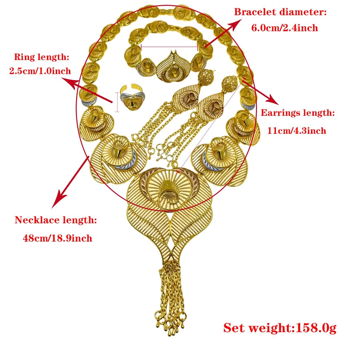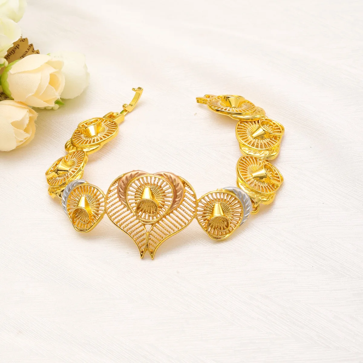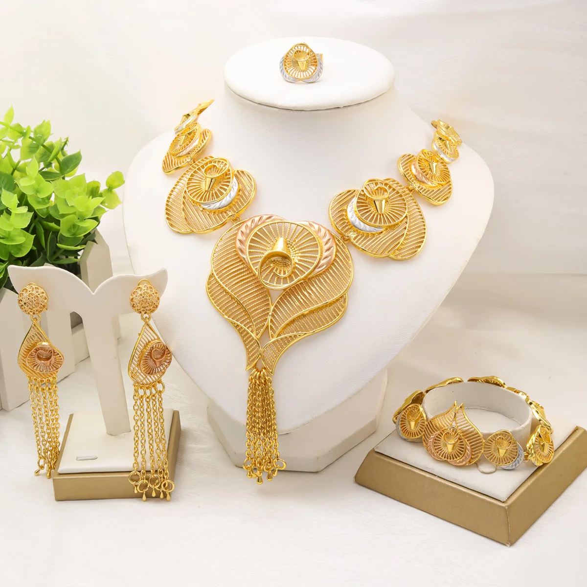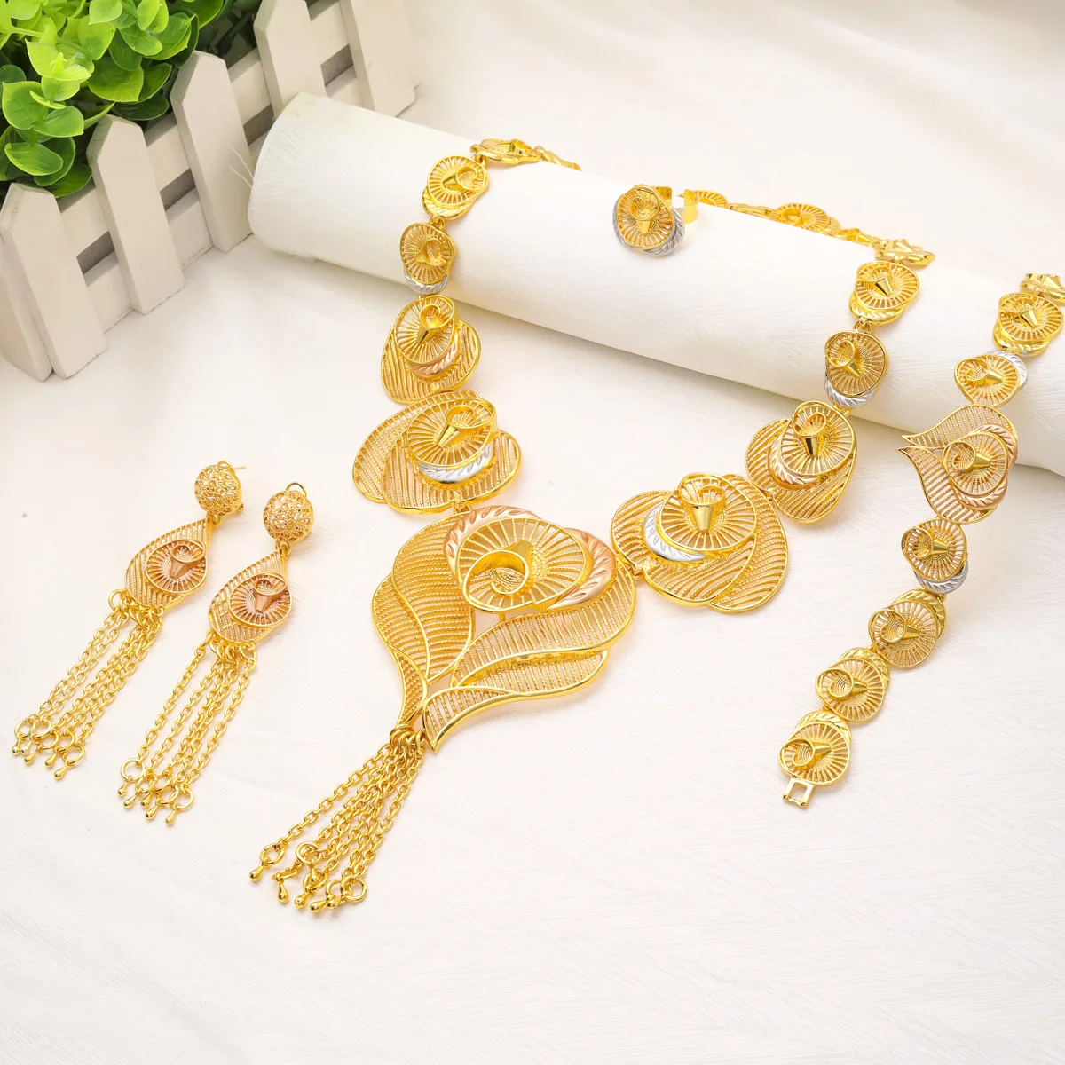 Liffly 24K Alloy Dubai Jewelry Sets for Women Gold Color Necklace Earrings Bracelet African Bridal Wedding Jewellery Wholesale