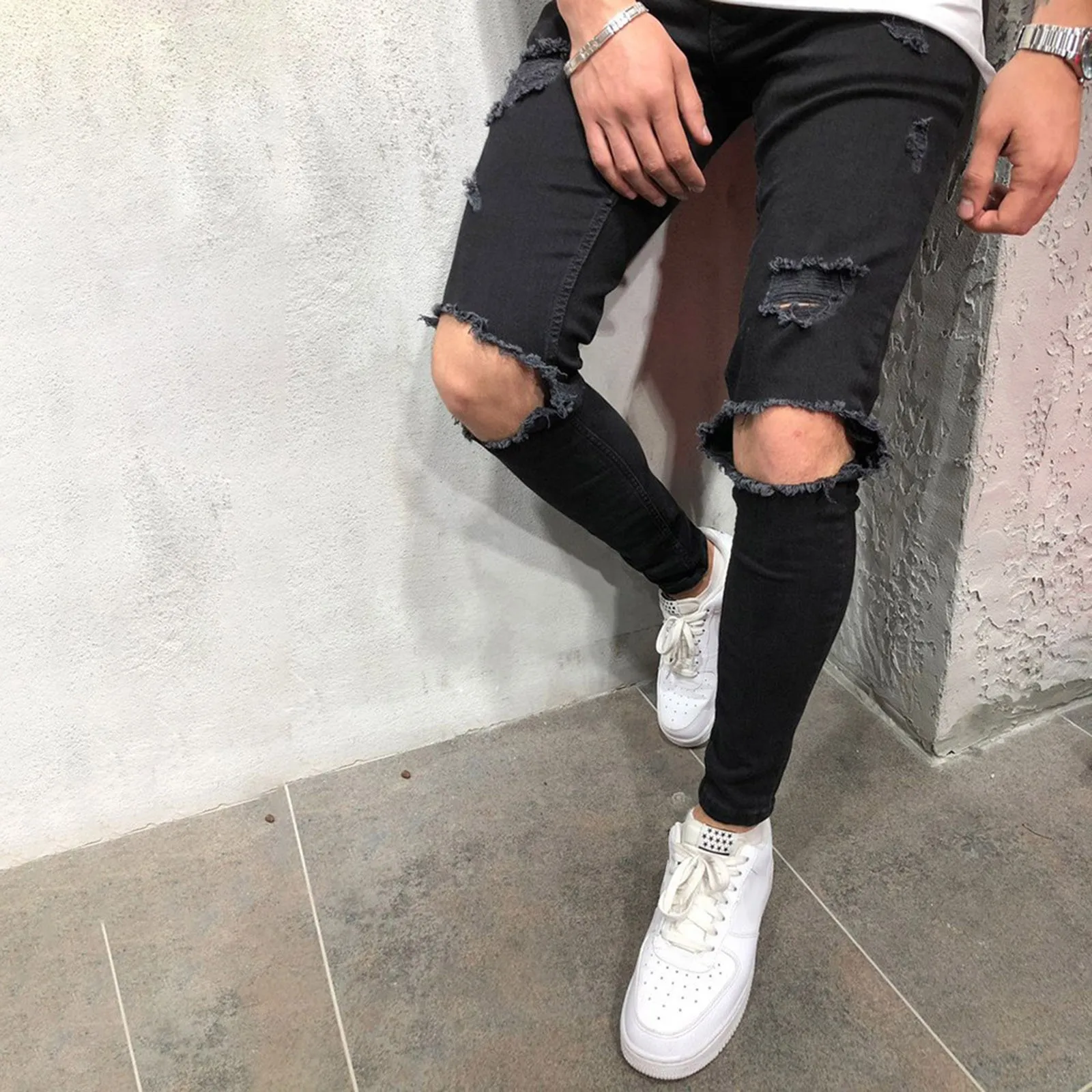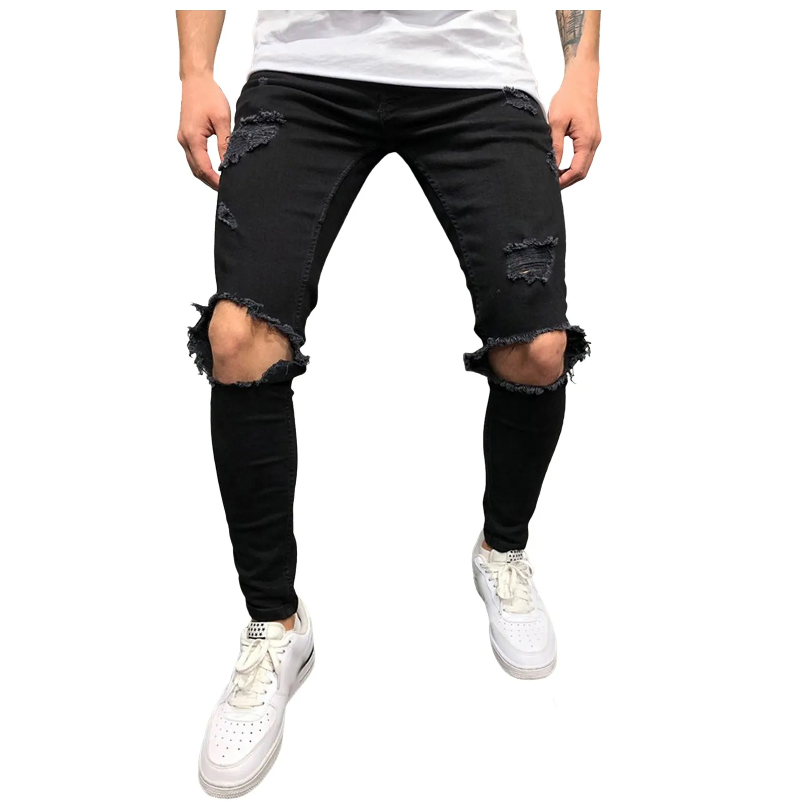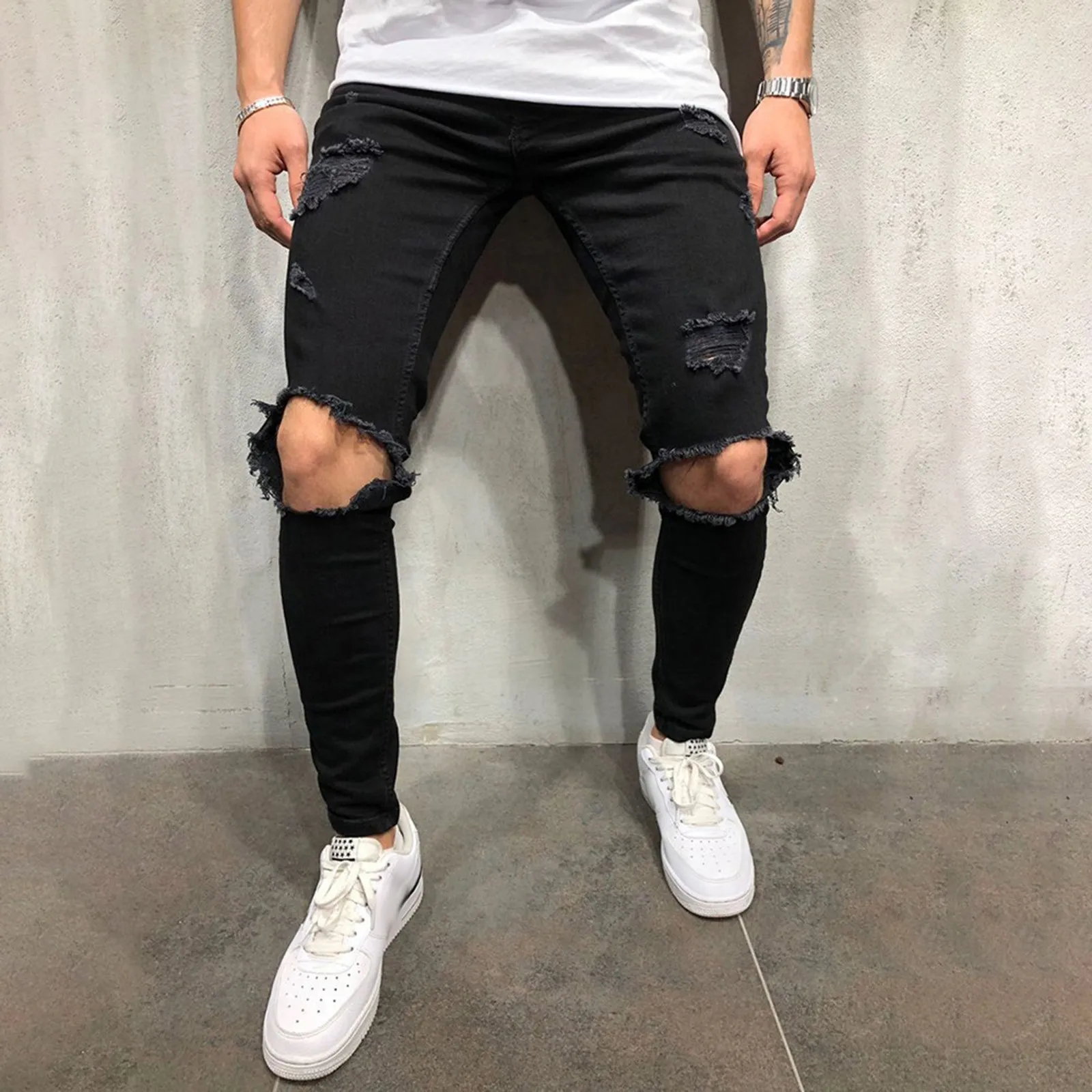 Men Pants Comfortable Jeans Slim Fit Small Feet Scratched Denim Ripped Jeans Streetwear Baggy Jeans Y2k Punk Long Trousers