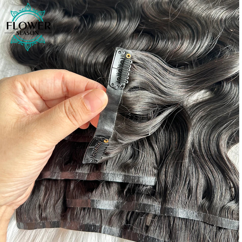 PU Clip ins Hair Extensions Human Hair Body Wave Invisible Seamless Clip in human hair Skin Weft 120g/7pcs Full Head for Women