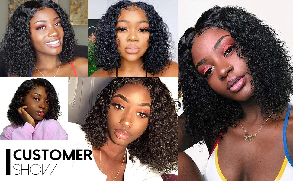 Short Curly Bob Lace Front Human Hair Wigs PrePluck With Baby Hair Brazilian Deep Wave Frontal Wig For Women Water Wave Lace Wig