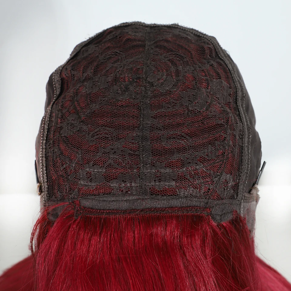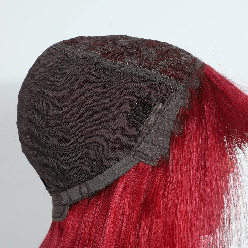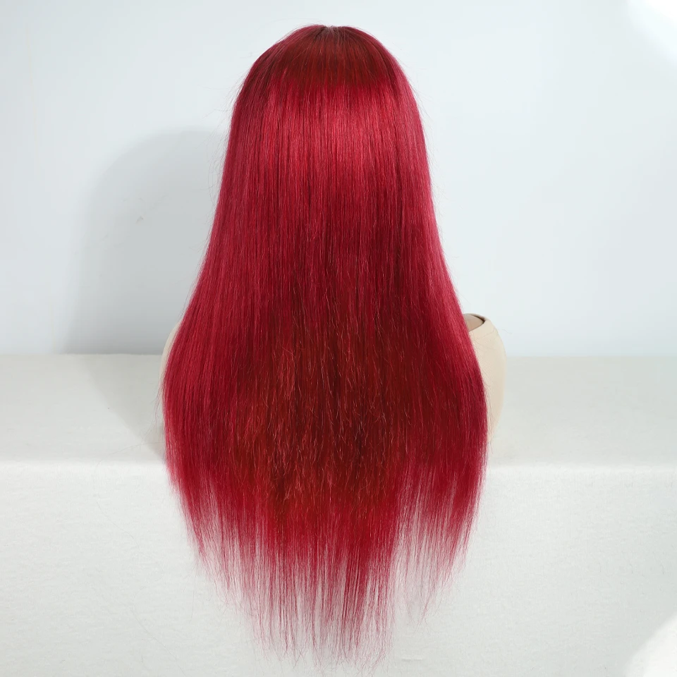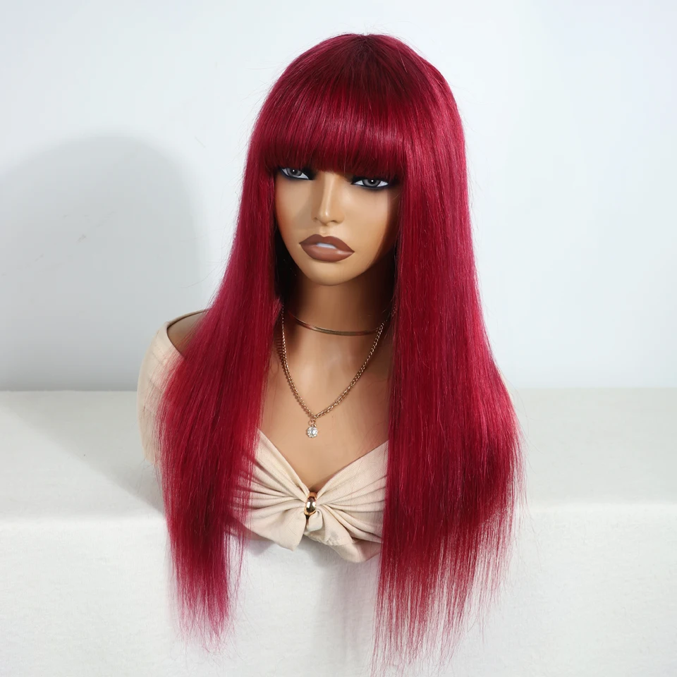 Sleek Burgury Red Staright Wigs With Bangs Human Hair Wig Easy to Go Color Wig Peruvian Straight Human Hair Wigs with Bangs