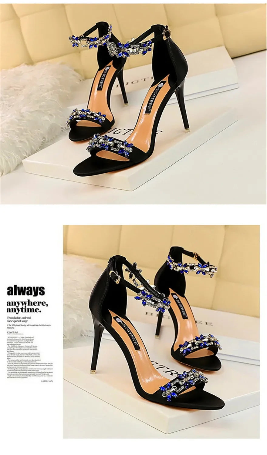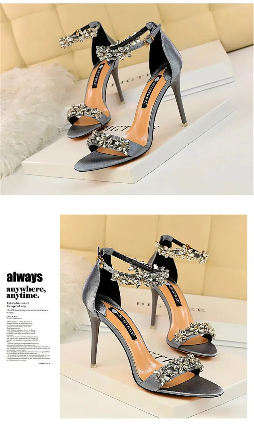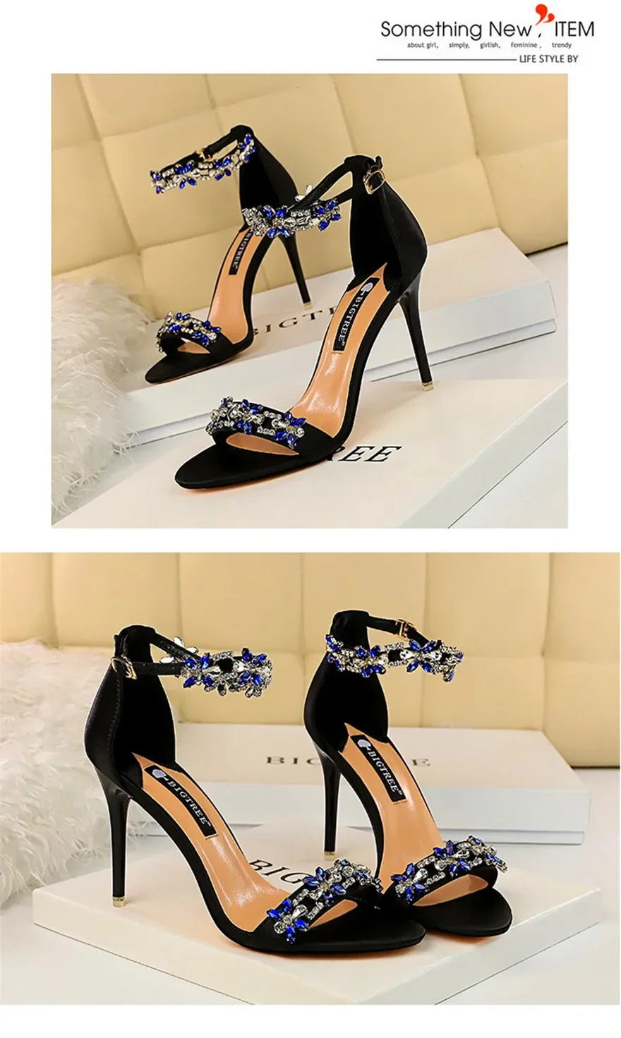 Soft Silk Open Toe Women Sandals 2024 Summer Luxury Crystal Ankle Buckle High Heels Shoes Bride Party Lady Green Red Black Pumps