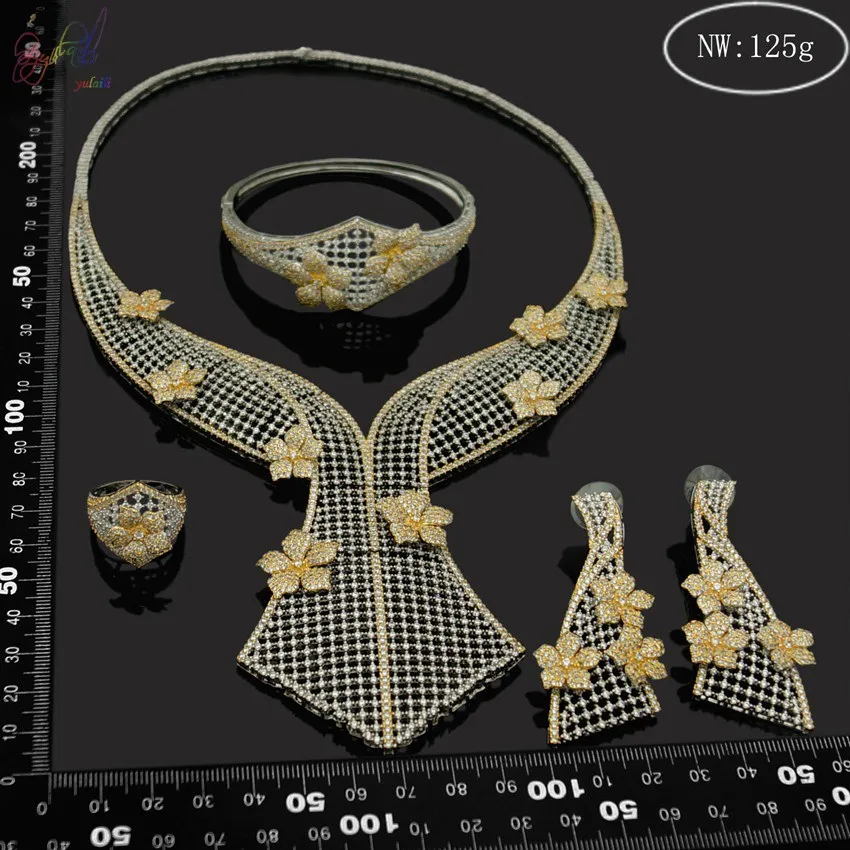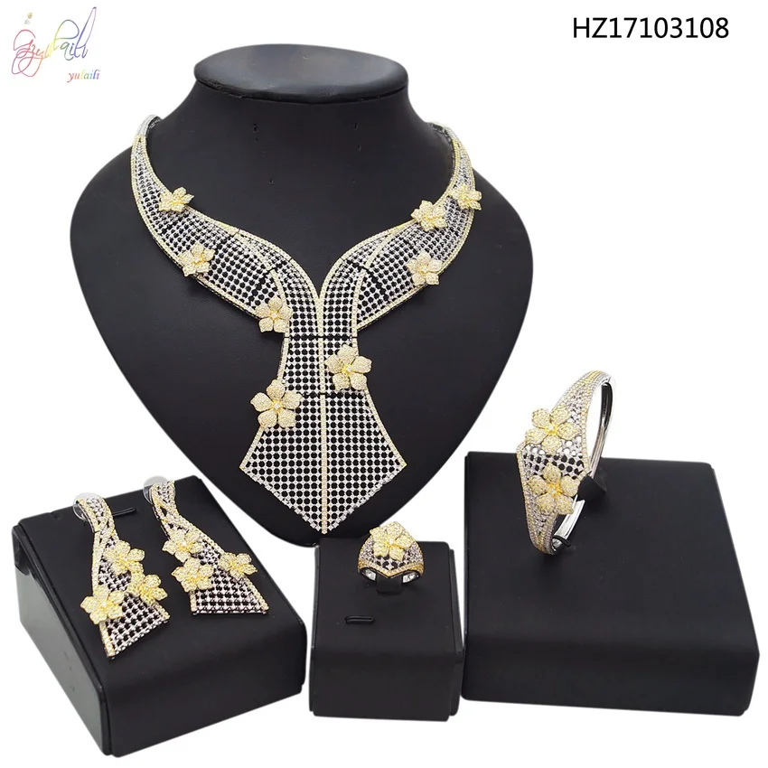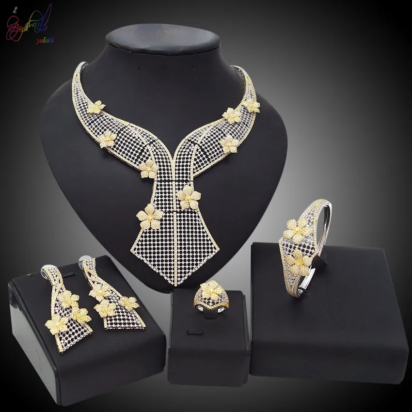 Yulaili Luxury Brass Cubic Zircon Jewelry Sets for Women Wedding Bridal Jewellery Set