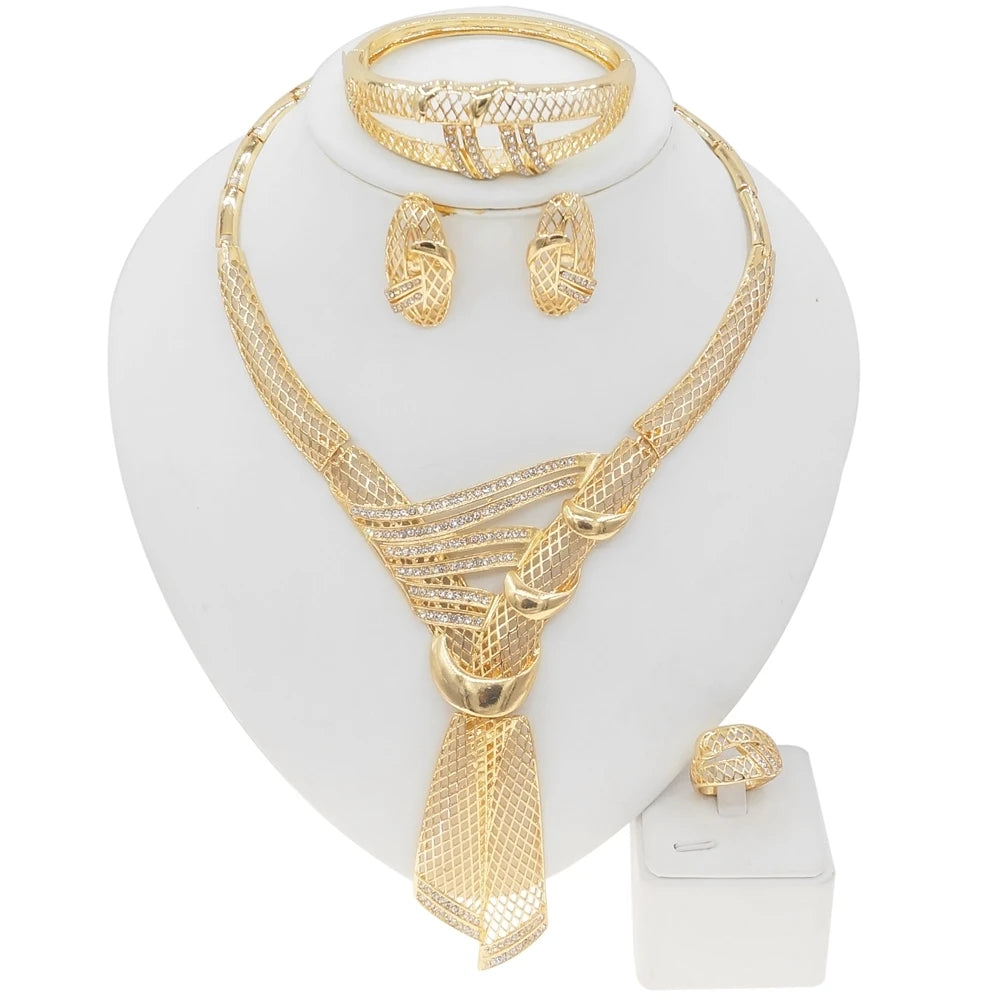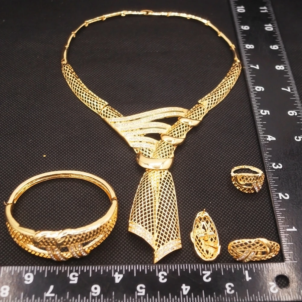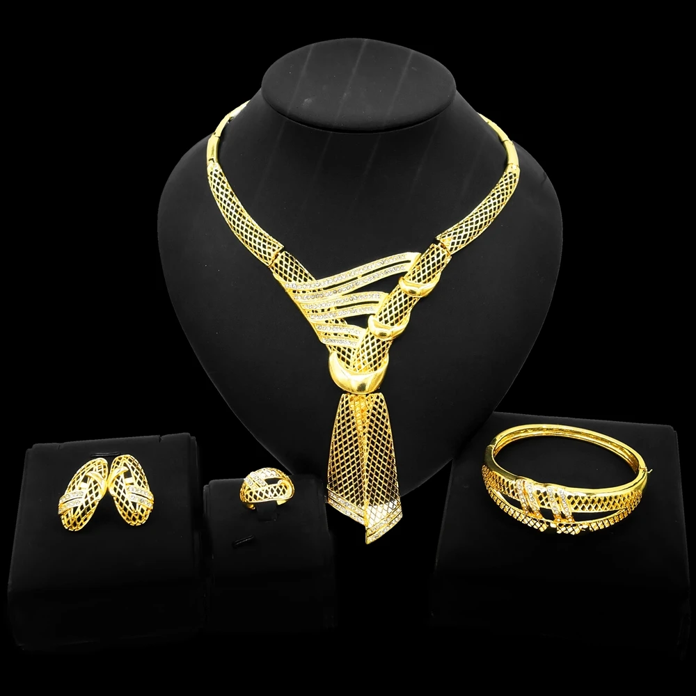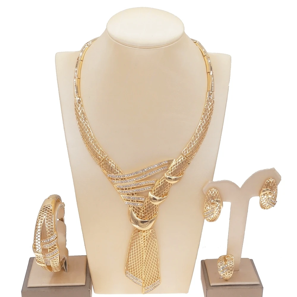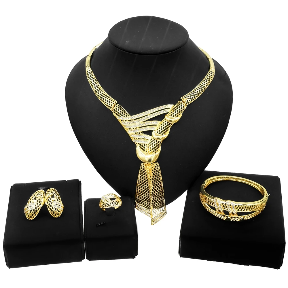 Italian Bridal Jewelry Set Pendant Bangle Earrings Ring Chain Jewelry Set Women's Necklace Jewelry Set