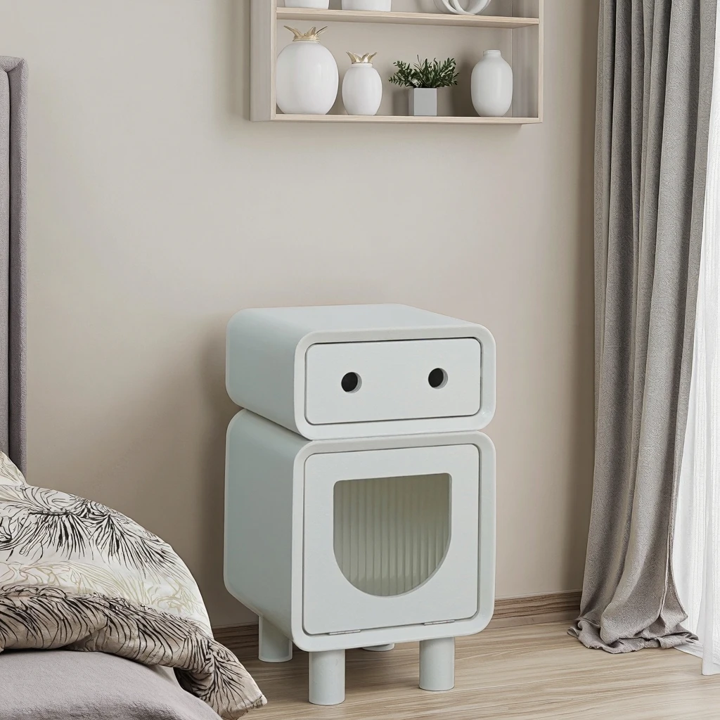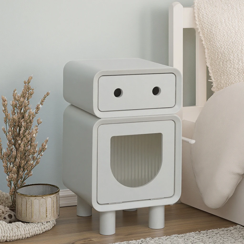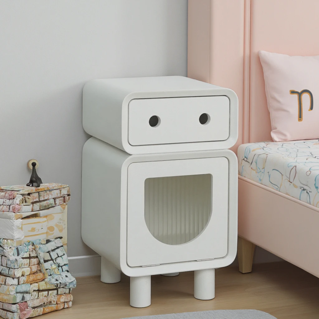 Table de chevet robot créative de style crème français, armoire en bois pour salon simple et chambre d'enfant, rangement mignon pour divers articles