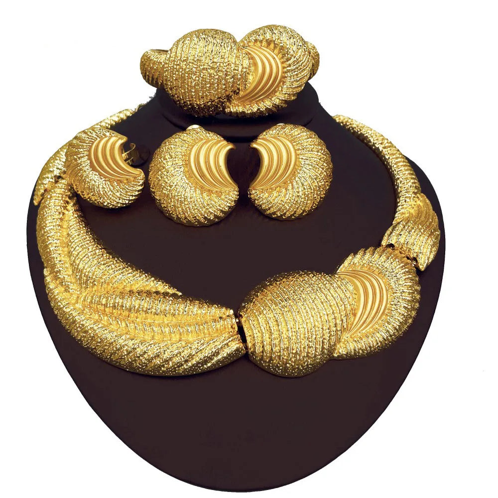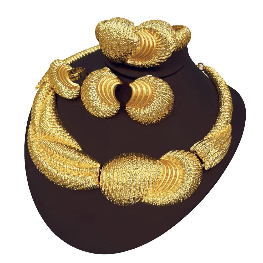 Parure de bijoux de luxe plaquée or 18 carats, grand collier, bracelet épais, boucles d'oreilles en forme de lune, bague, cadeau de mariage pour femme