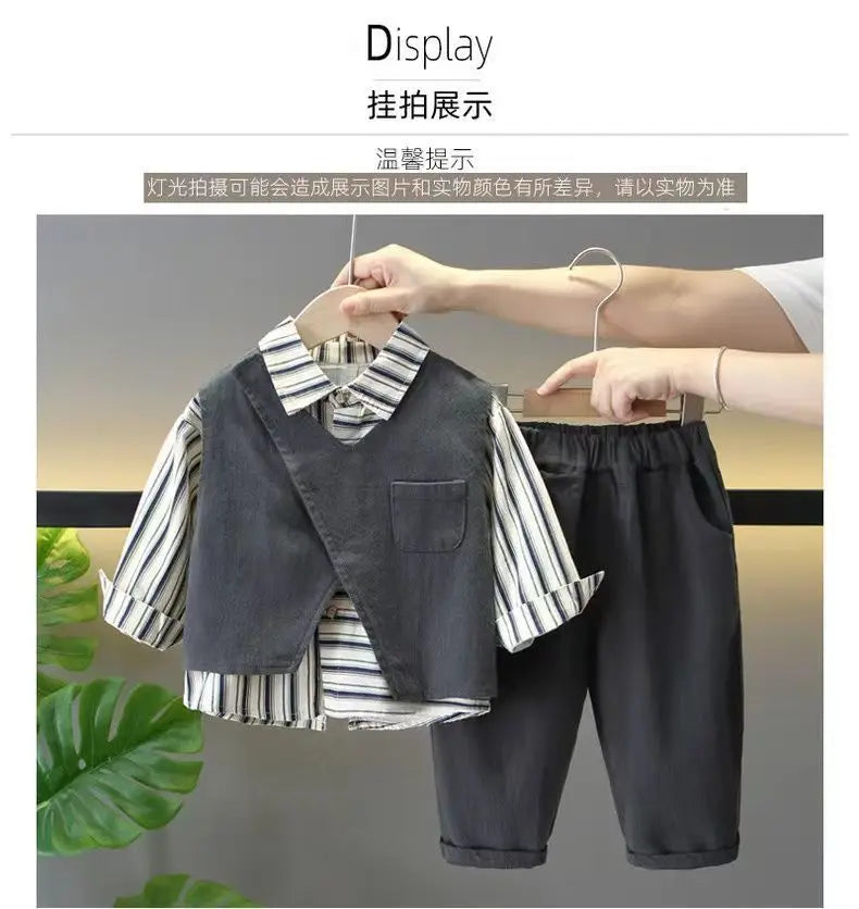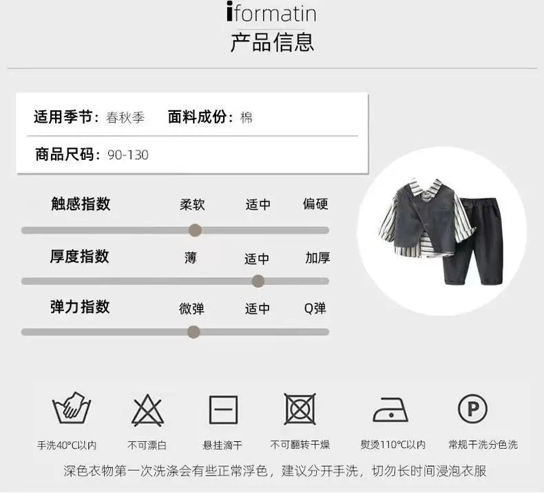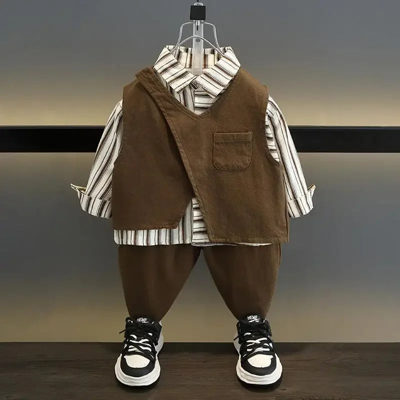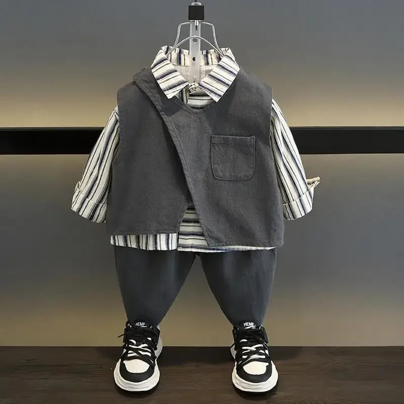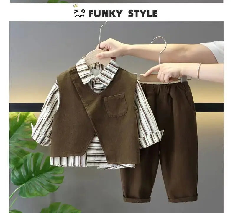 2-10Y Boys Clothing Set 2025 New Handsome Casual Spring and Autumn Baby Children's Vest T-shirt Pants 3 Piece Set Kids Outfits