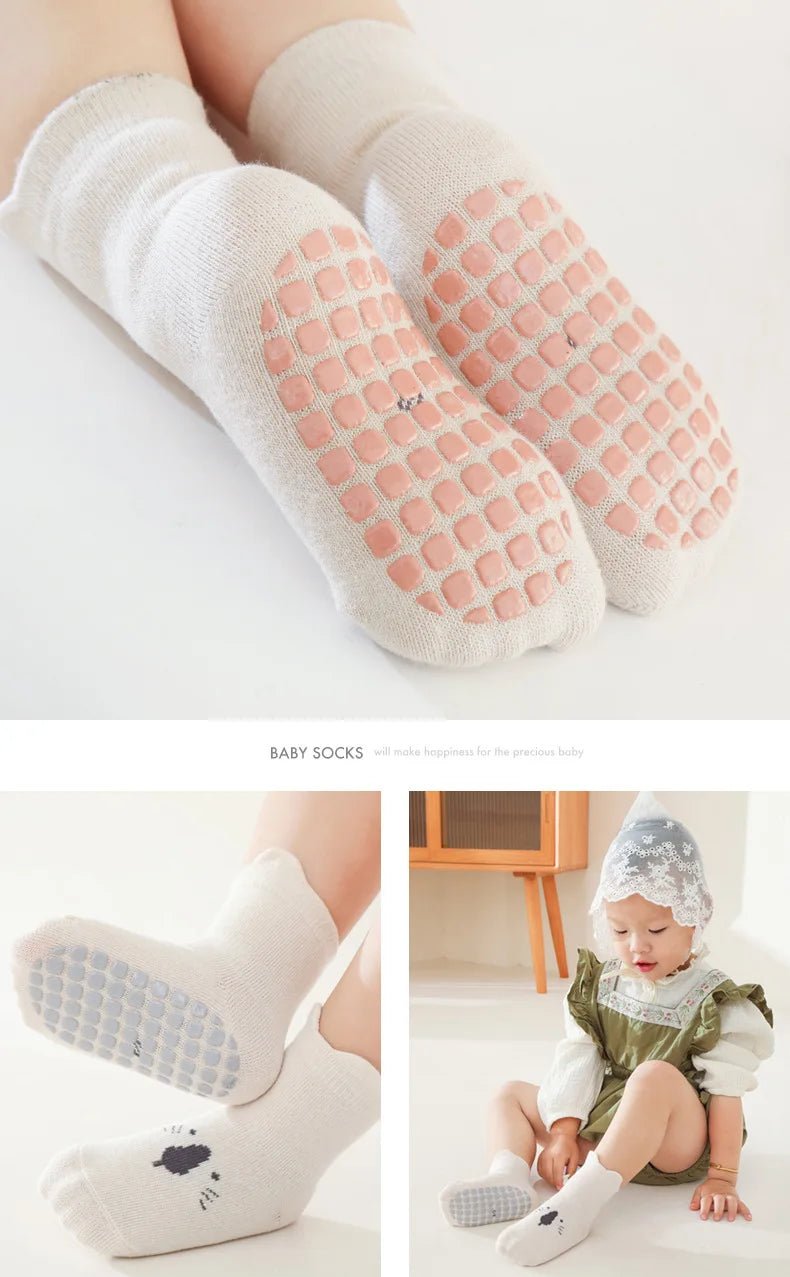 3Pairs/Lot Cartoon Baby Socks Infant Newborn Anti-Slip Cotton Floor Socks For Girls Boys Cute Unisex Rubber Grips Toddler Socken