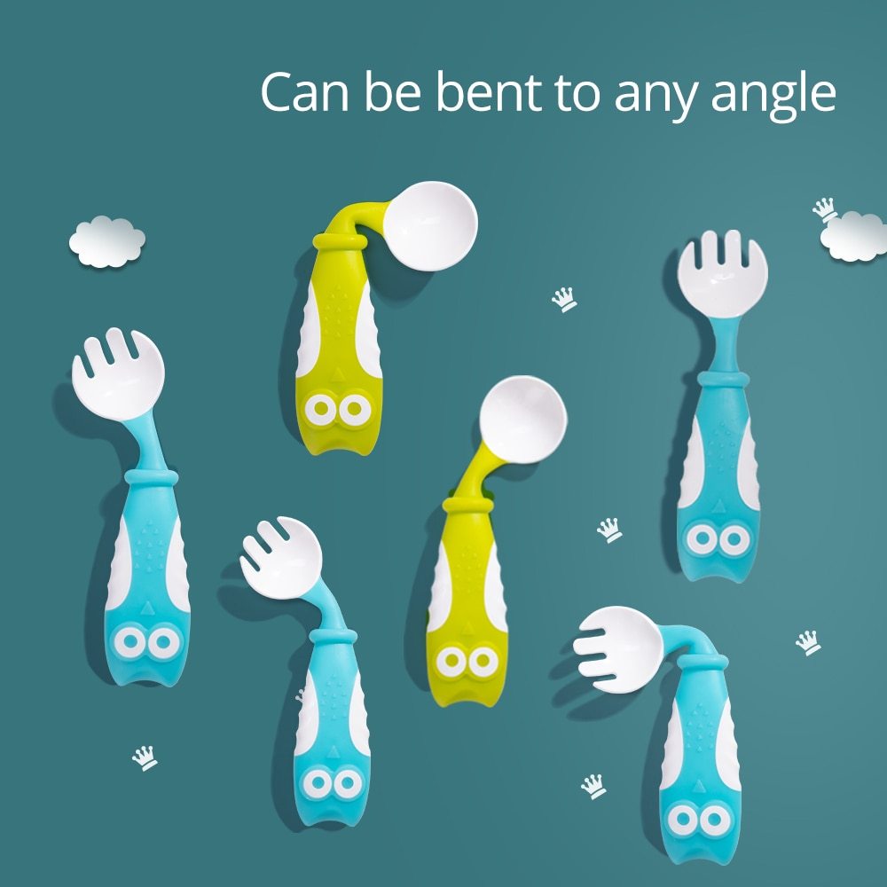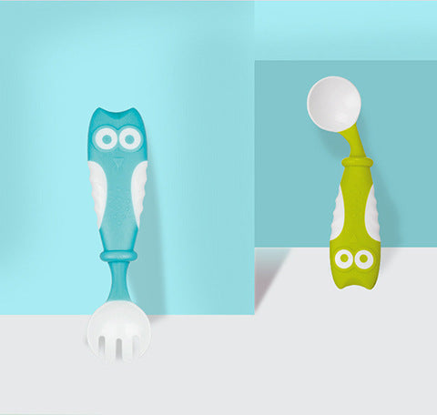 Baby Feeding Tableware – Owl Elbow Spoon & Fork Set