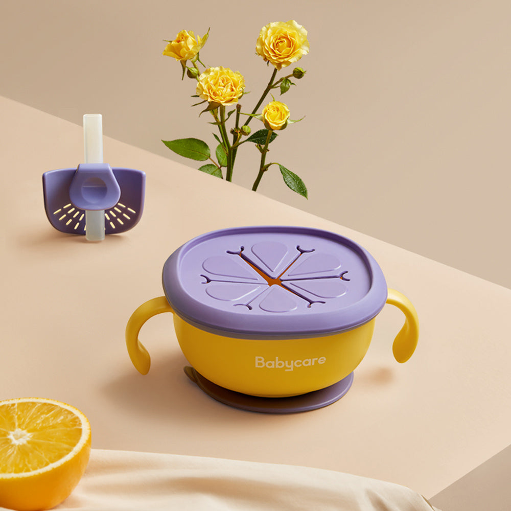 3-in-1 Baby Snack Bowl with Straw & Petal Lid – Anti-Spill Design
