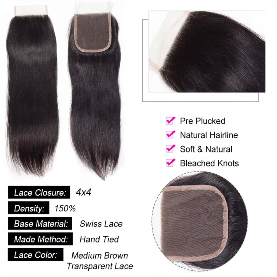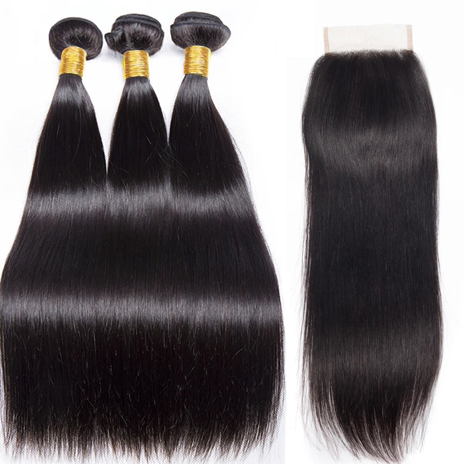Bone Straight Human Hair Bundles with 13x4 Lace Frontal Tissage Straight Brazilian Weave Bundles With Closure 4x4 with Bundles