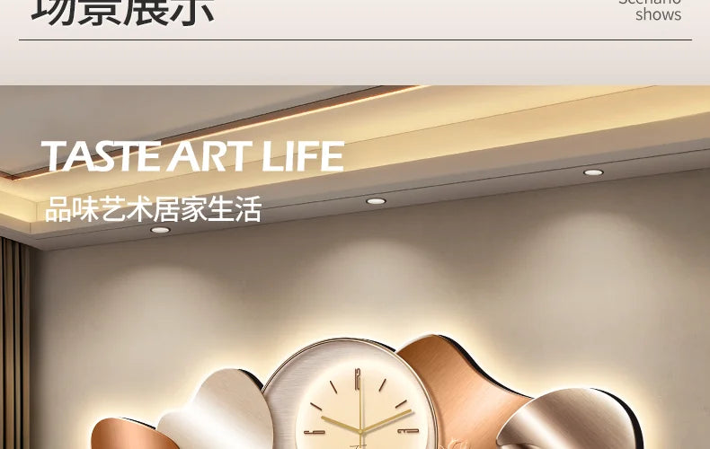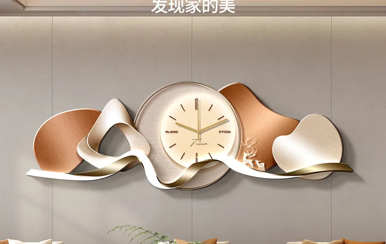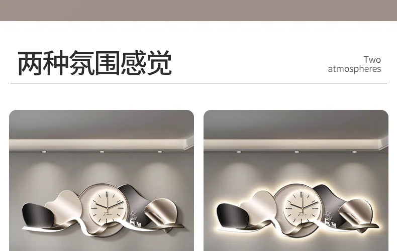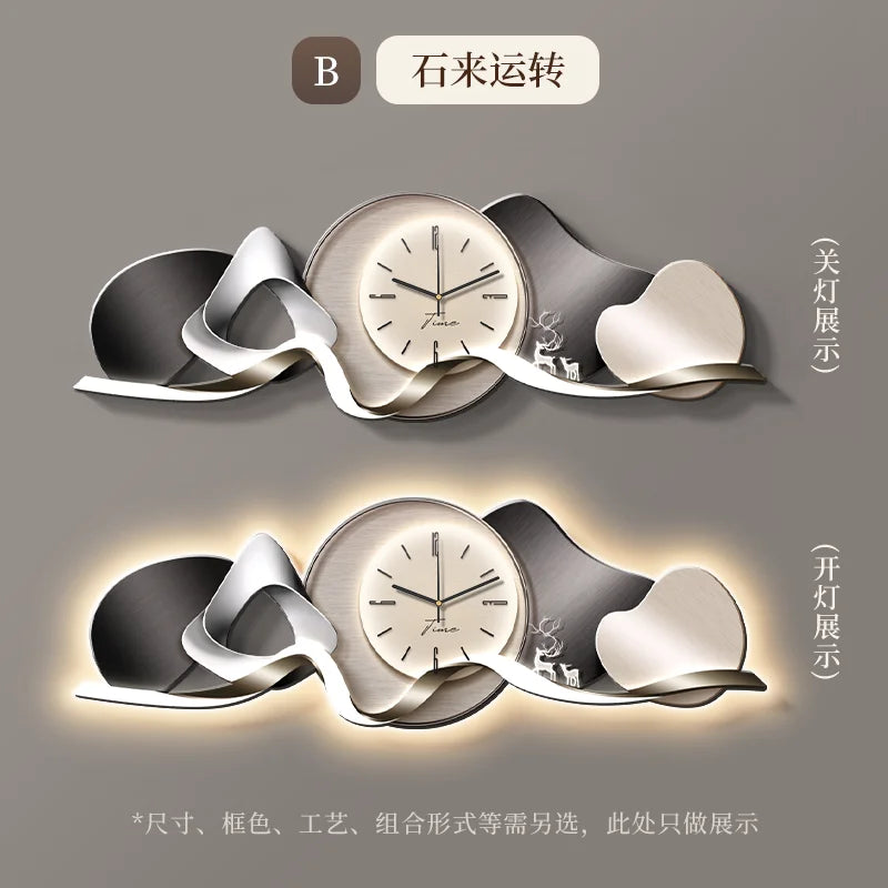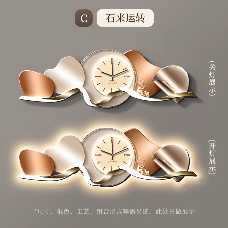 Luxury Wall Art With Built-in Clock Modern Living Room Decor 3D Wall Lamp Creative Sofa Background Painting Home Wall Decor