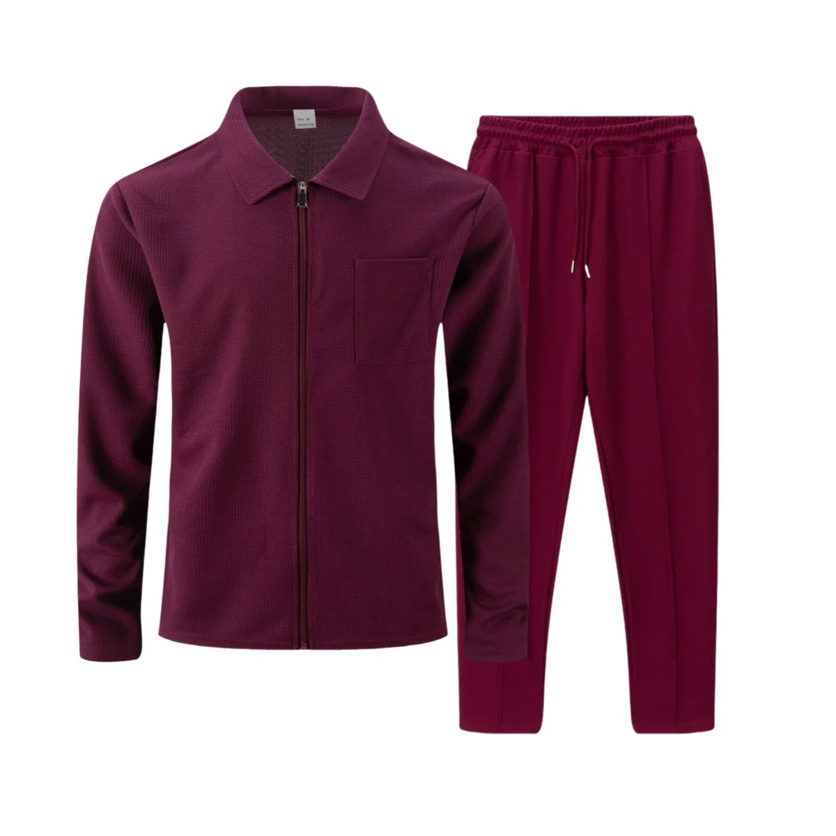 Men's Business Casual Two-Piece Set Spring Autumn Waffle Zippered Shirt Coat And Trousers Trendy Fashionable Outfit