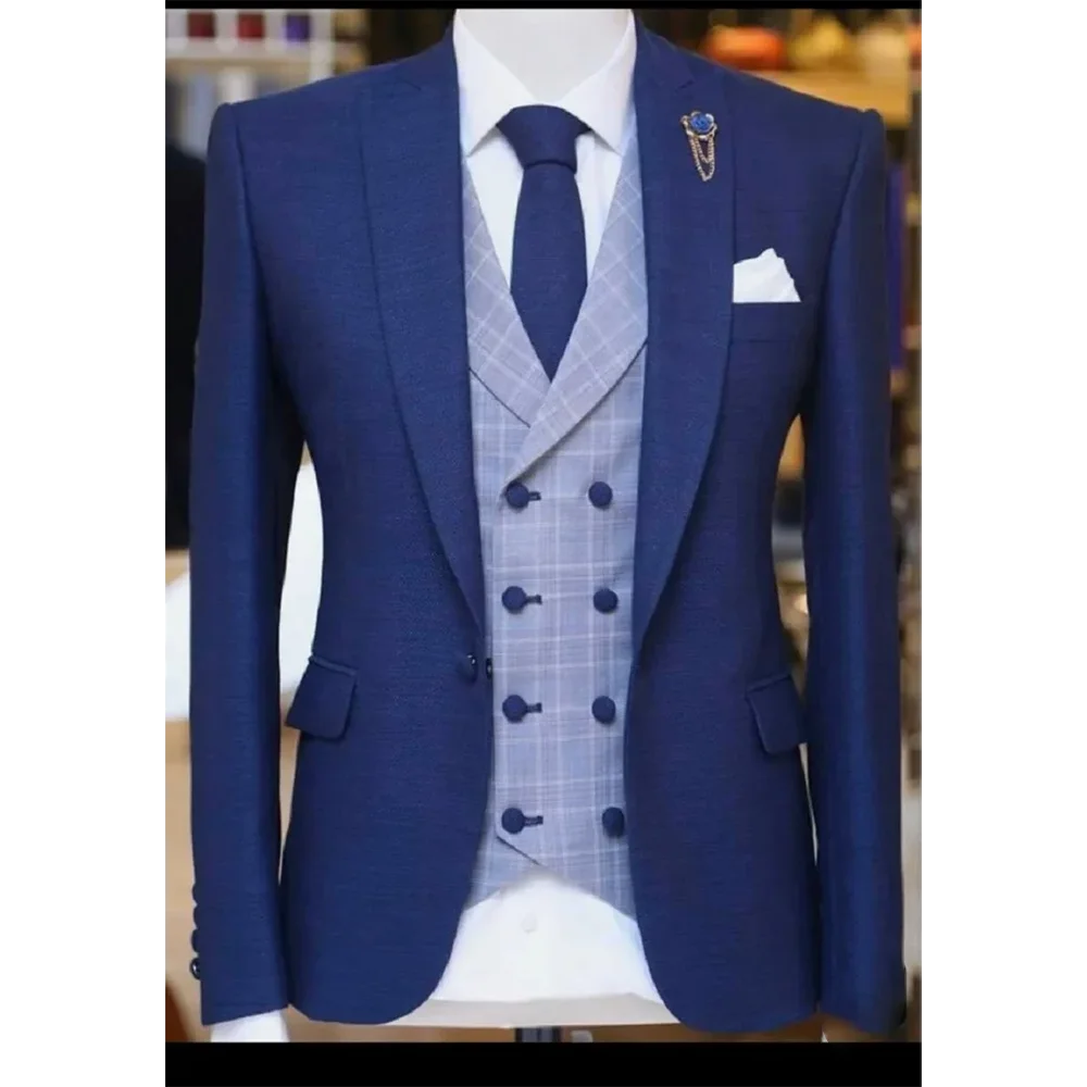 Slim Fit Blue Men Suits Elegant Single Breasted Peak Lapel High Quality Blazer Customized Wedding 3 Piece Jacket Pants Vest Sets