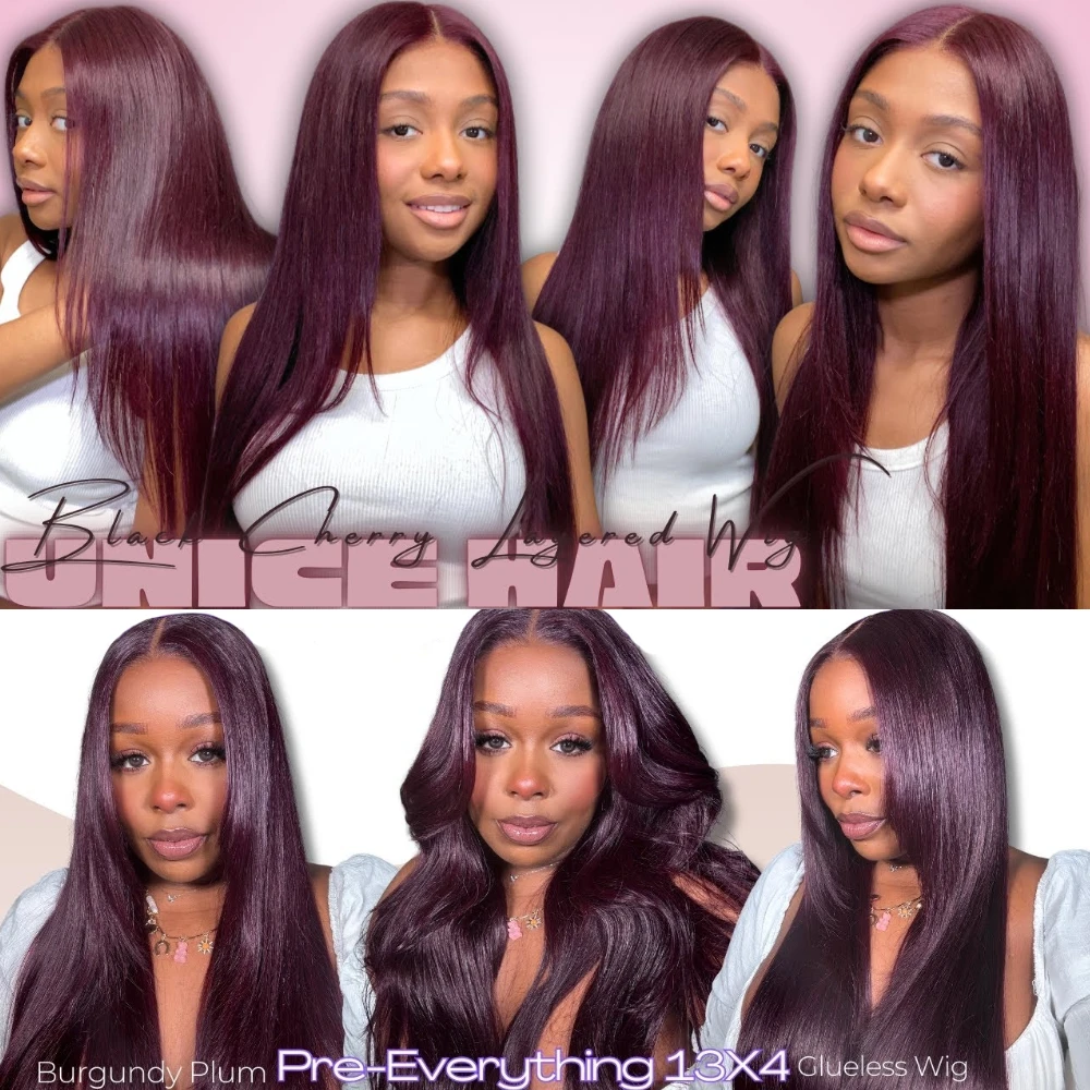 UNICE Black Cherry Colored Human Hair Wigs 7x5 & 13x4 Pre Cut Pre Bleached Glueless Wig Human hair Ready To Wear 150% Density