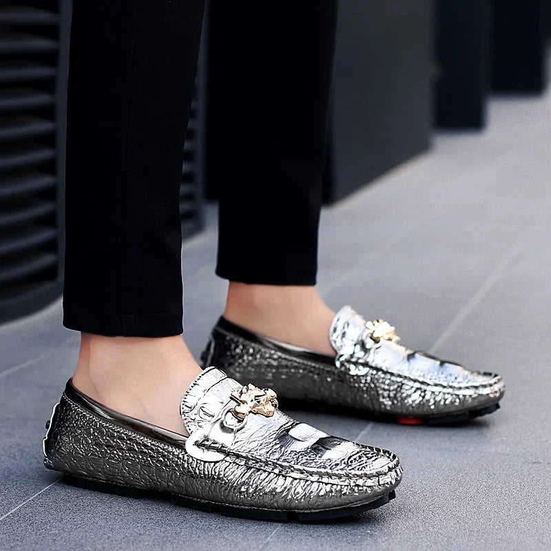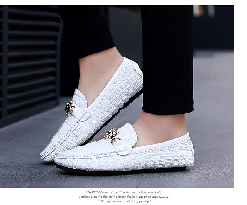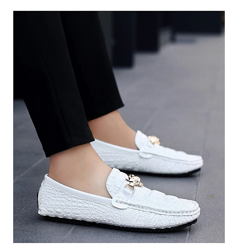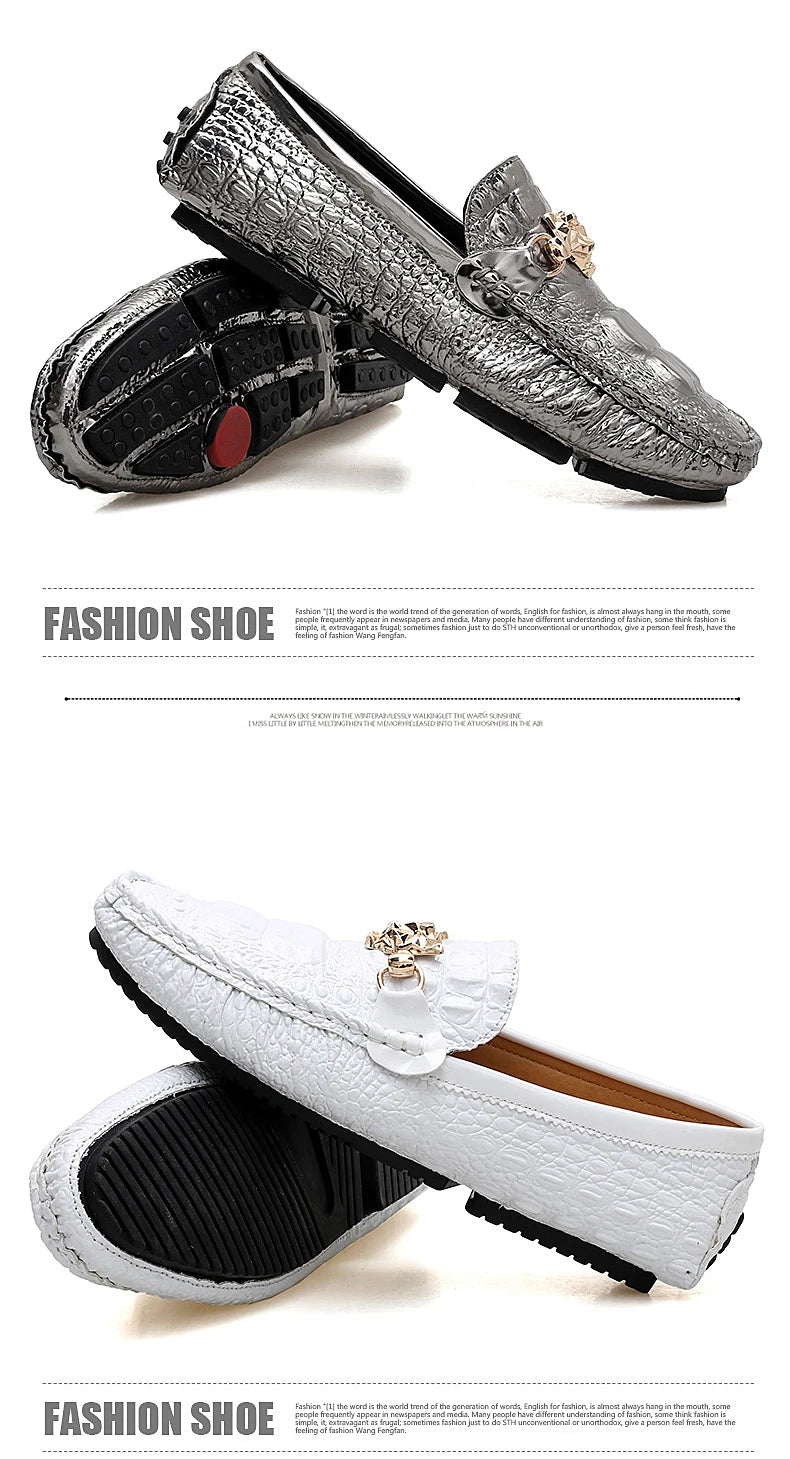 2024 New Stylish Men Big Size 39-48 Casual Moccasins Shoes White Silver Male Formal Business Office Shoes Party Moccasin Loafers