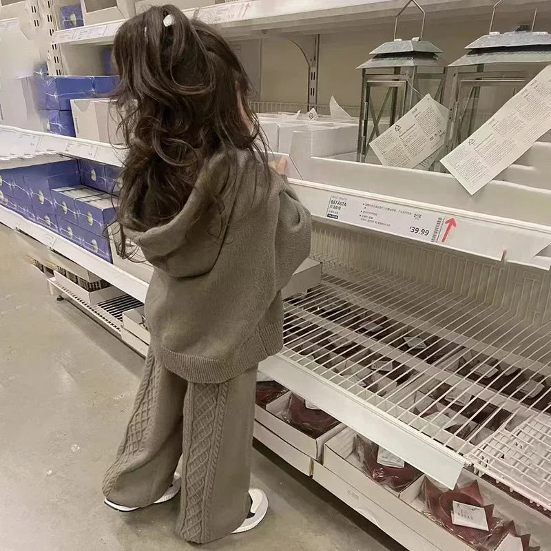 Children Clothing 2022 Autumn Winter Girls Casual Sweater Set Hooded Knitted Coat and Pants Two Piece Set Korean Kids Clothes